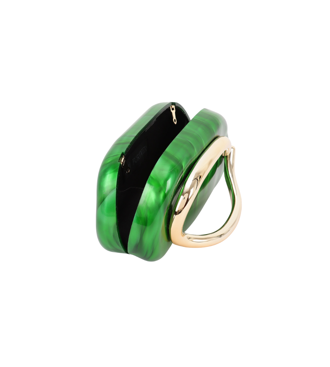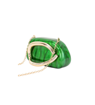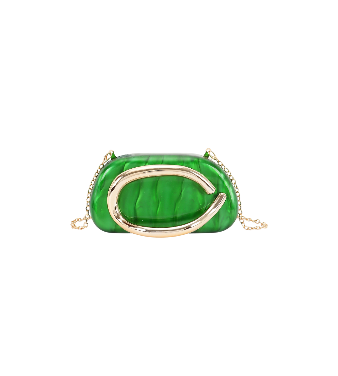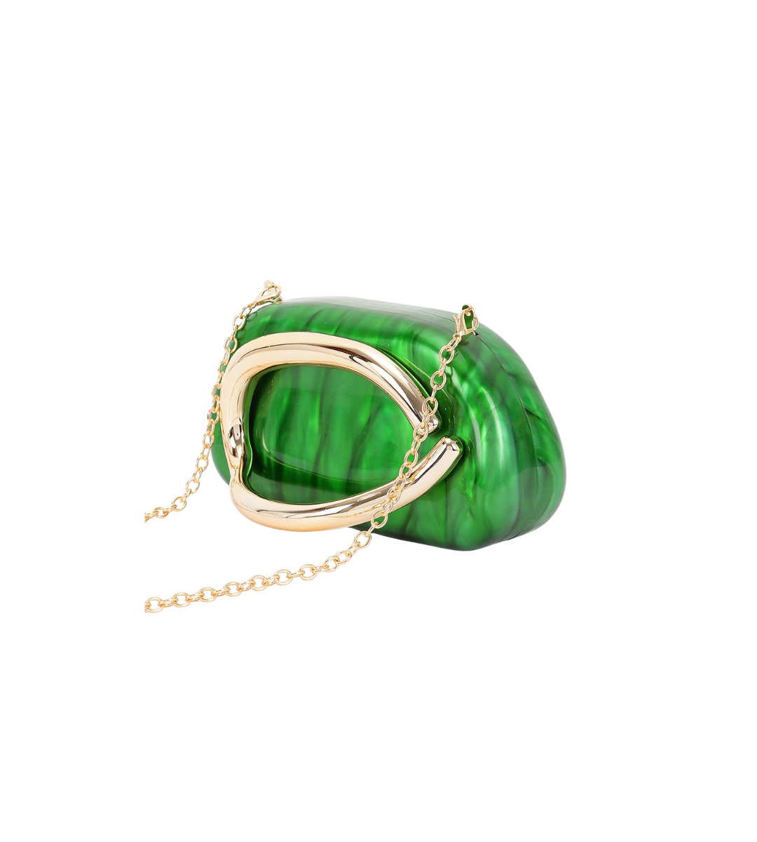 Features an acrylic body with a marble - like texture, complemented by a metal handle and a gold - tone chain strap