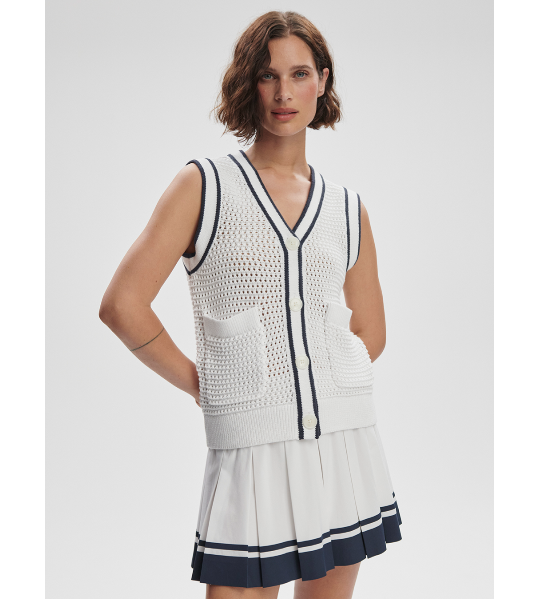 Ferns Open Knit Tank - Snow White