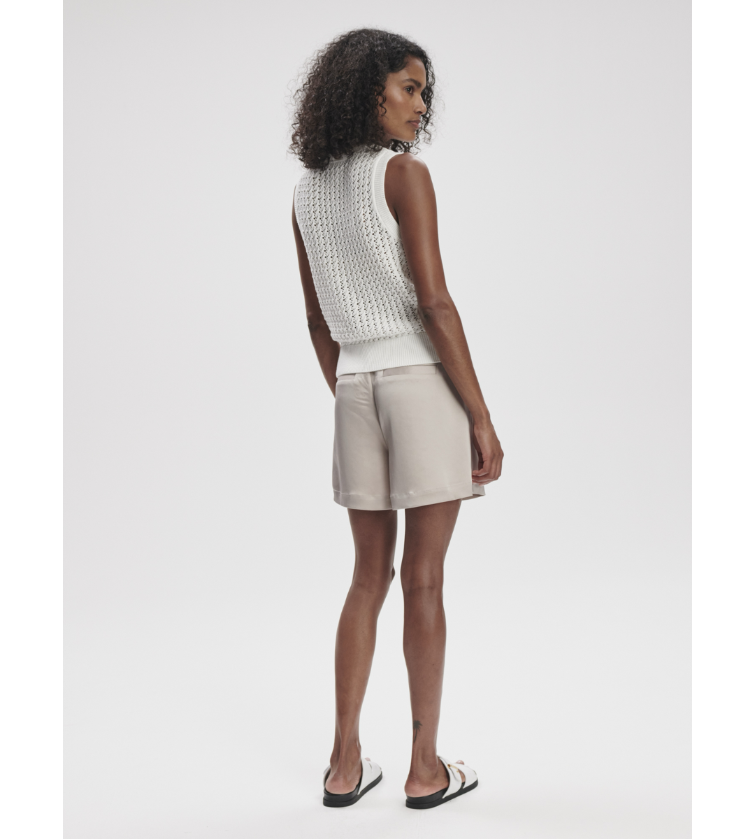 Lightweight, breezy, and effortlessly polished—the Ferns Tank is your go-to knit for warm days. Crafted with an airy open-stitch pattern and a classic scoop neckline, this sleeveless style pairs a vintage-inspired texture with a clean, modern silhouette. The wide ribbed hem adds structure, making it perfect for tucking into shorts or styling loose for a relaxed summer look.