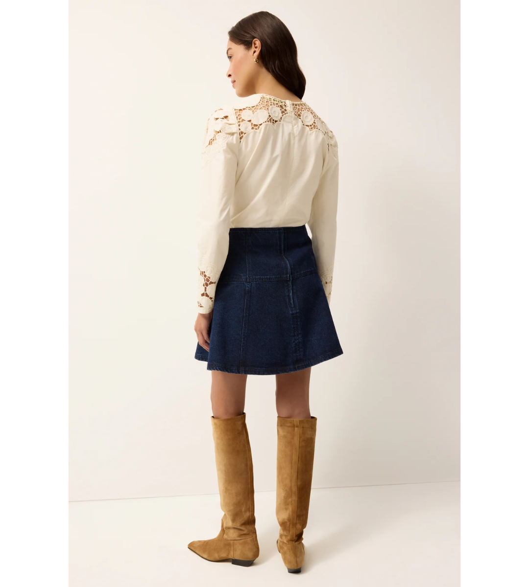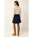 This versatile mini is fitted at the waist and hips with a gentle flare to create a flattering and playful silhouette. Cut from a soft dark wash denim, the Crawford skirt pairs beautifully with your favorite tops and knits.