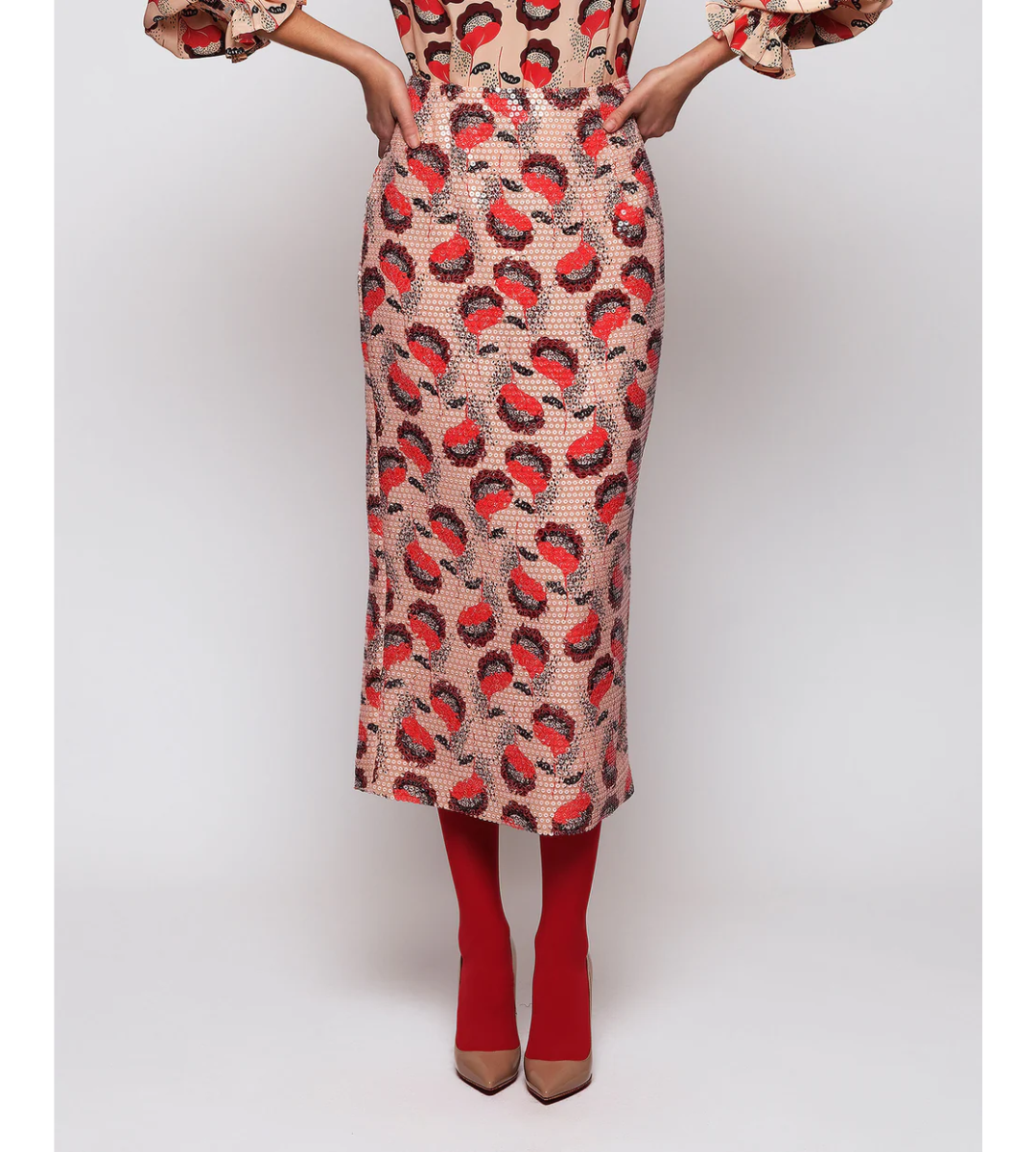 The Rosa Skirt by Mirto is an exquisite fall statement piece—a chic sequin midi skirt that shimmers with elegance. Designed to elevate any look, it’s the perfect blend of sophistication and modern glamour for the season.