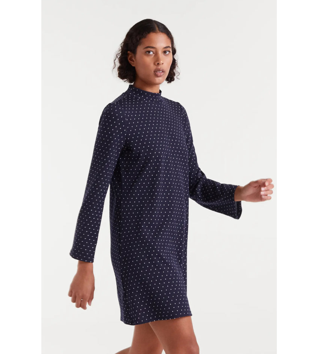 Effortlessly elegant with a touch of vintage charm, The Helena Dress is your go-to mini for fall. Featuring a timeless polka dot print, this long sleeve silhouette flatters with a cinched waist and softly flared hem.