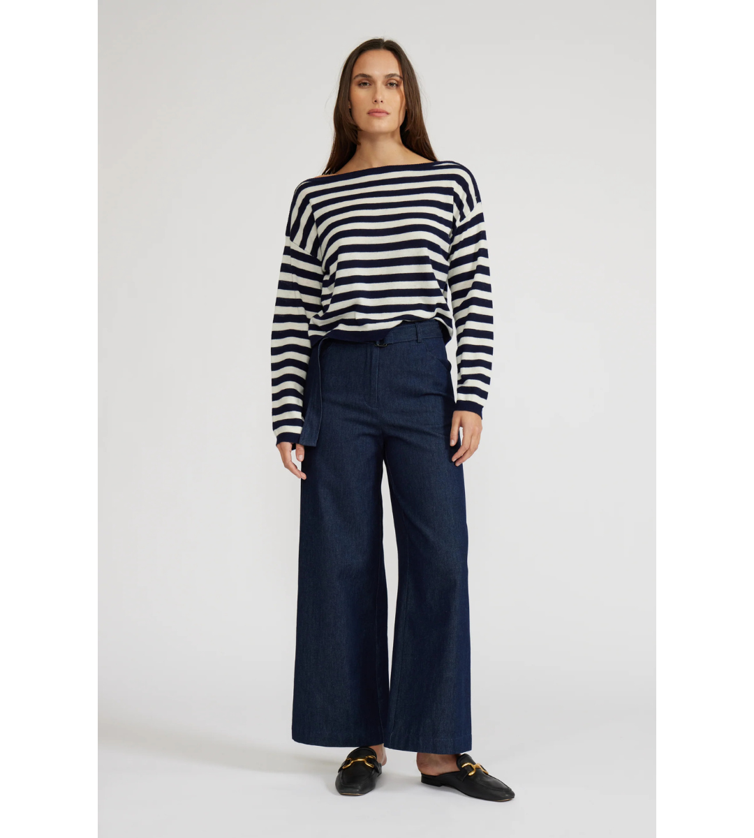 Elevate your denim game with the Danielle Pant. This high-waisted wide leg silhouette is effortlessly flattering, giving you that long and lean look with every step. Designed in sturdy yet comfortable denim, it’s finished with a chic ribbon D-ring belt that adds a touch of polish and adjustability. Pair it with a tucked-in blouse for a refined look or a casual tee for everyday ease—these pants are made to move from day to night in style.