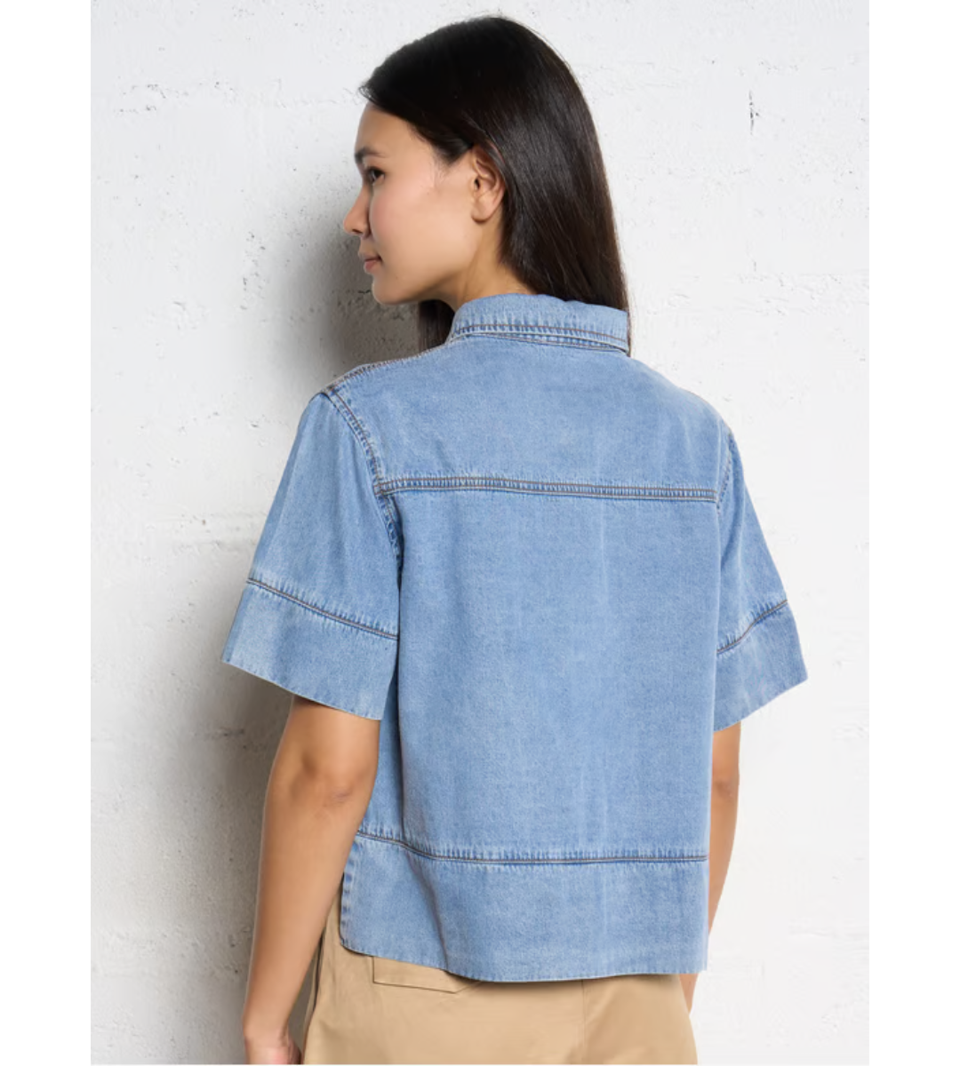 Oversized blouse with classic collar.