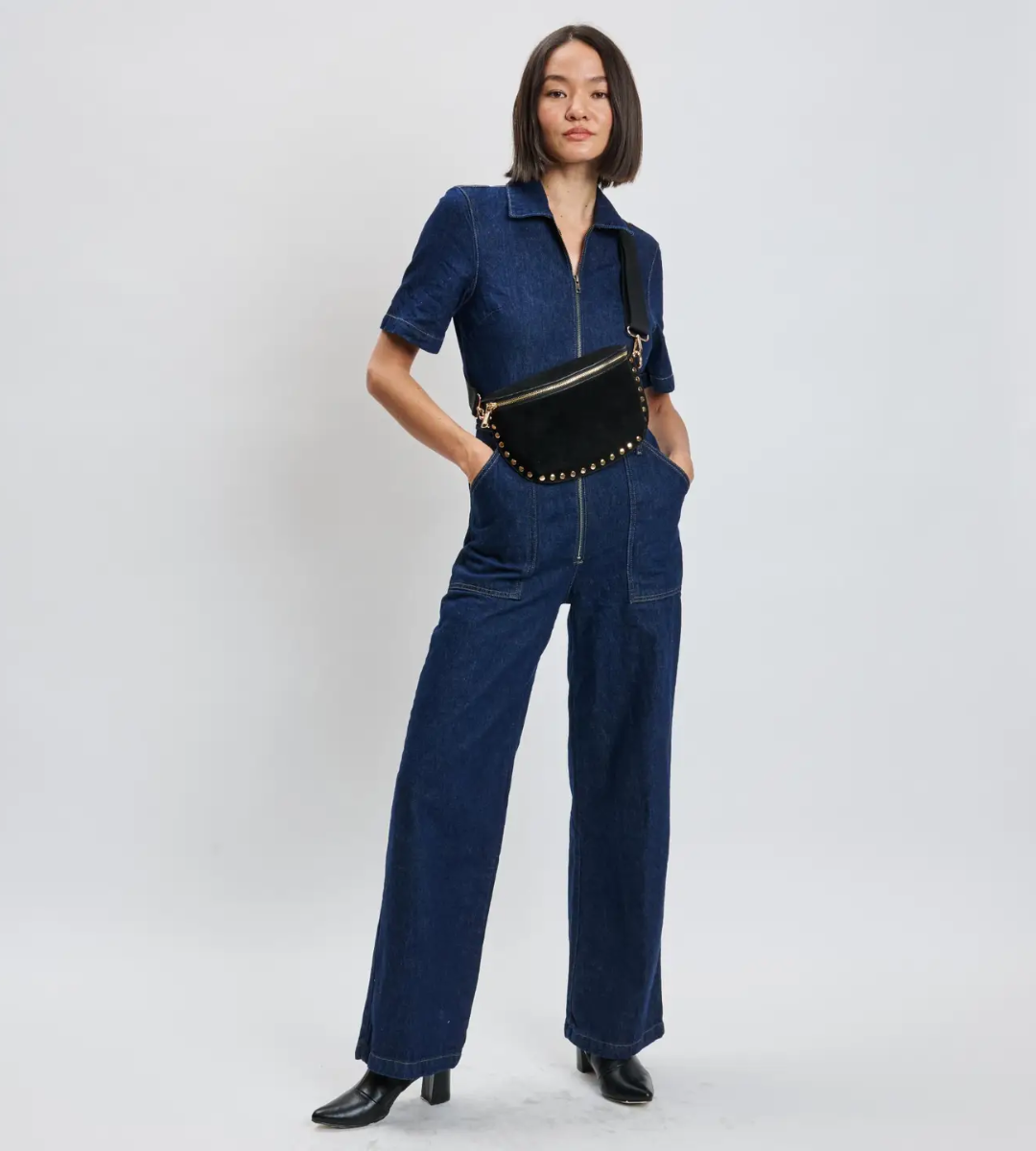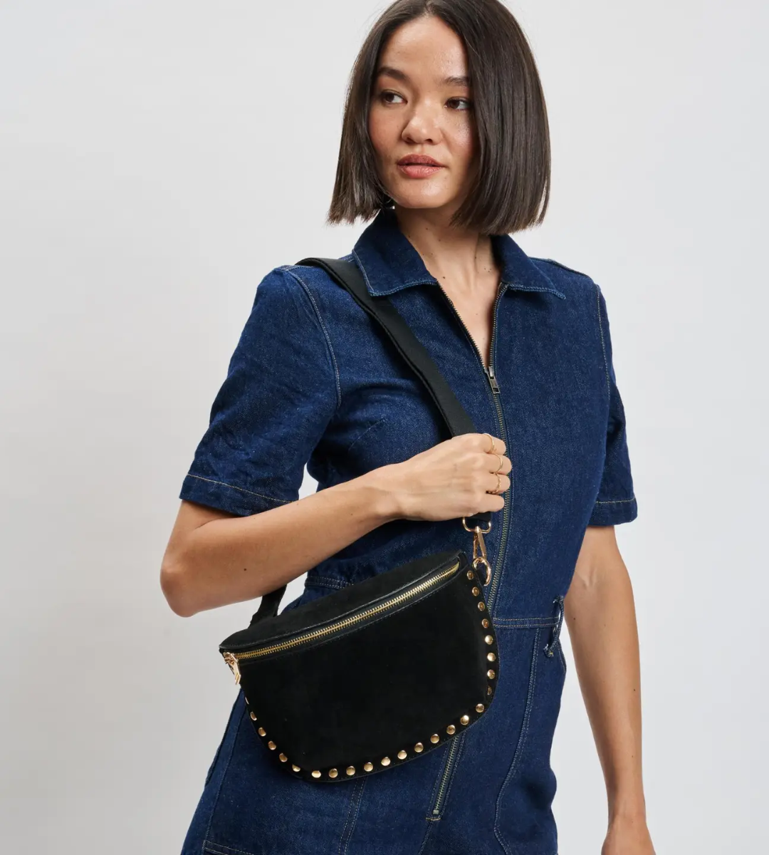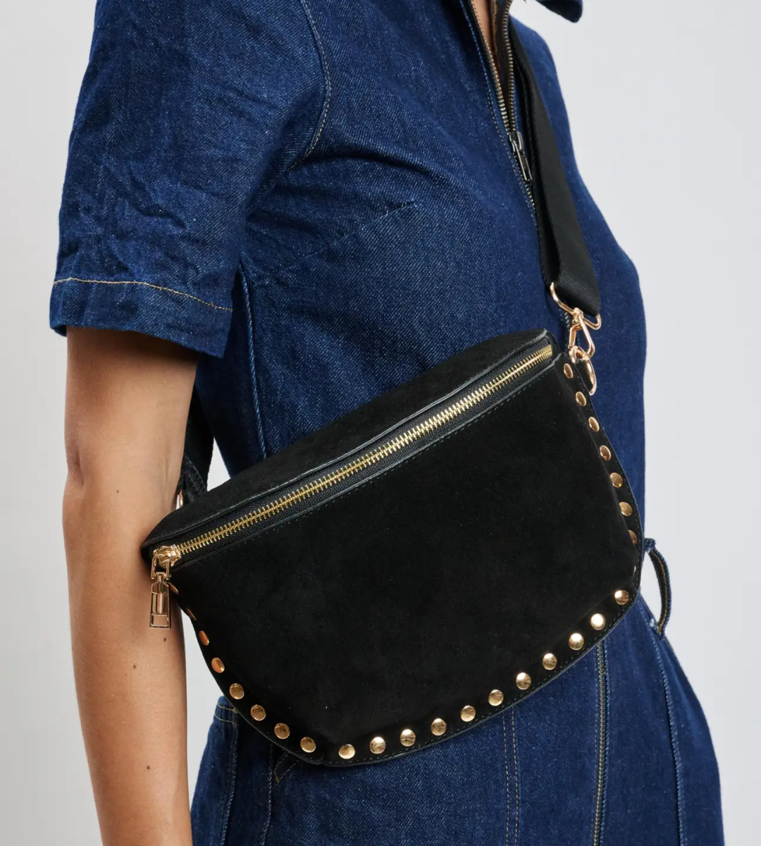 Unleash your inner trendsetter with this chic, versatile handbag, designed for the modern woman on the go. The Gizelle-Suede combines sophisticated style with everyday practicality, making it the perfect accessory for any occasion. Featuring elegant studded detailing and a sleek silhouette, this bag effortlessly transitions from day to night. The well-organized interior keeps your essentials secure, while multiple strap options provide customized comfort.
