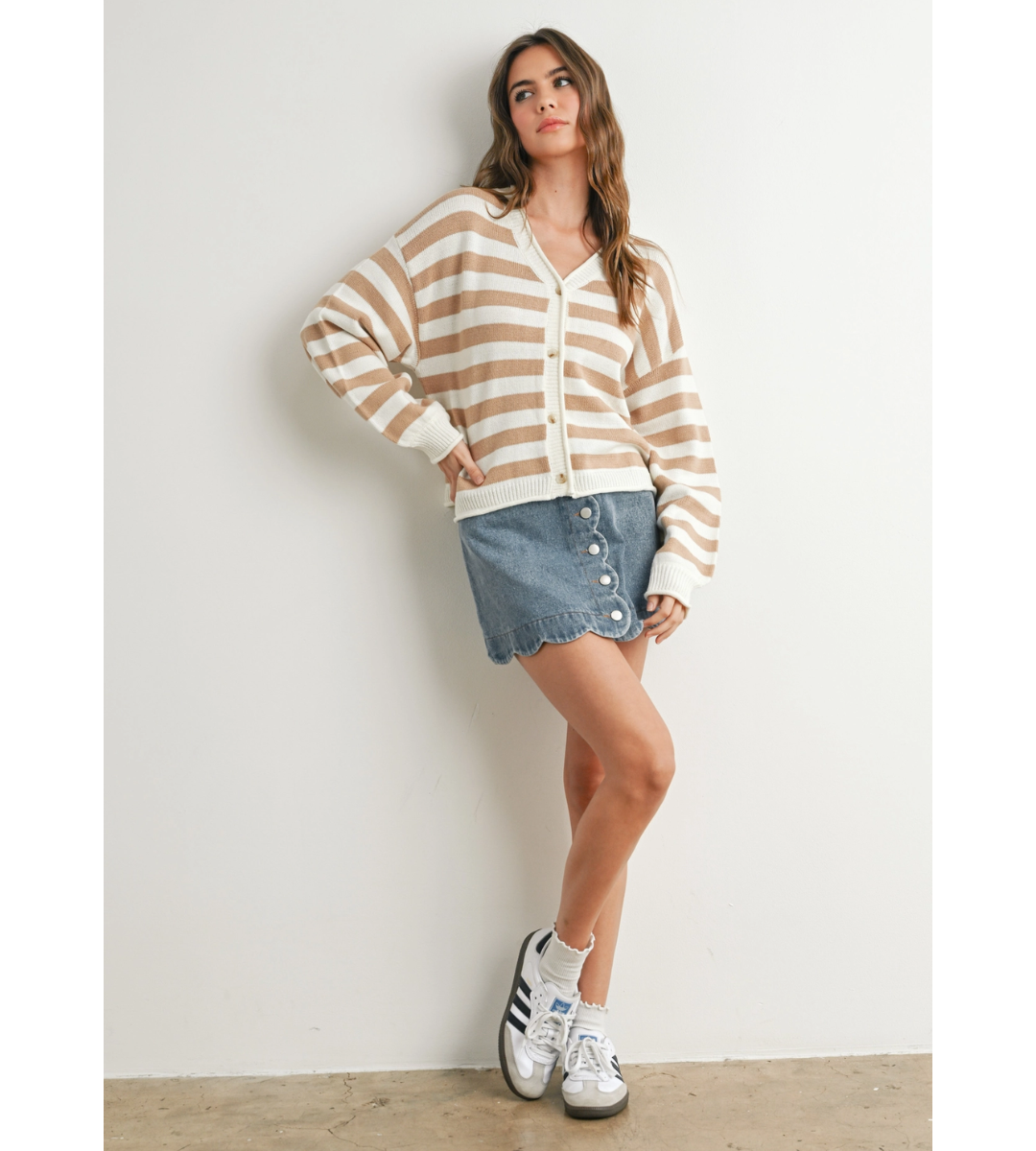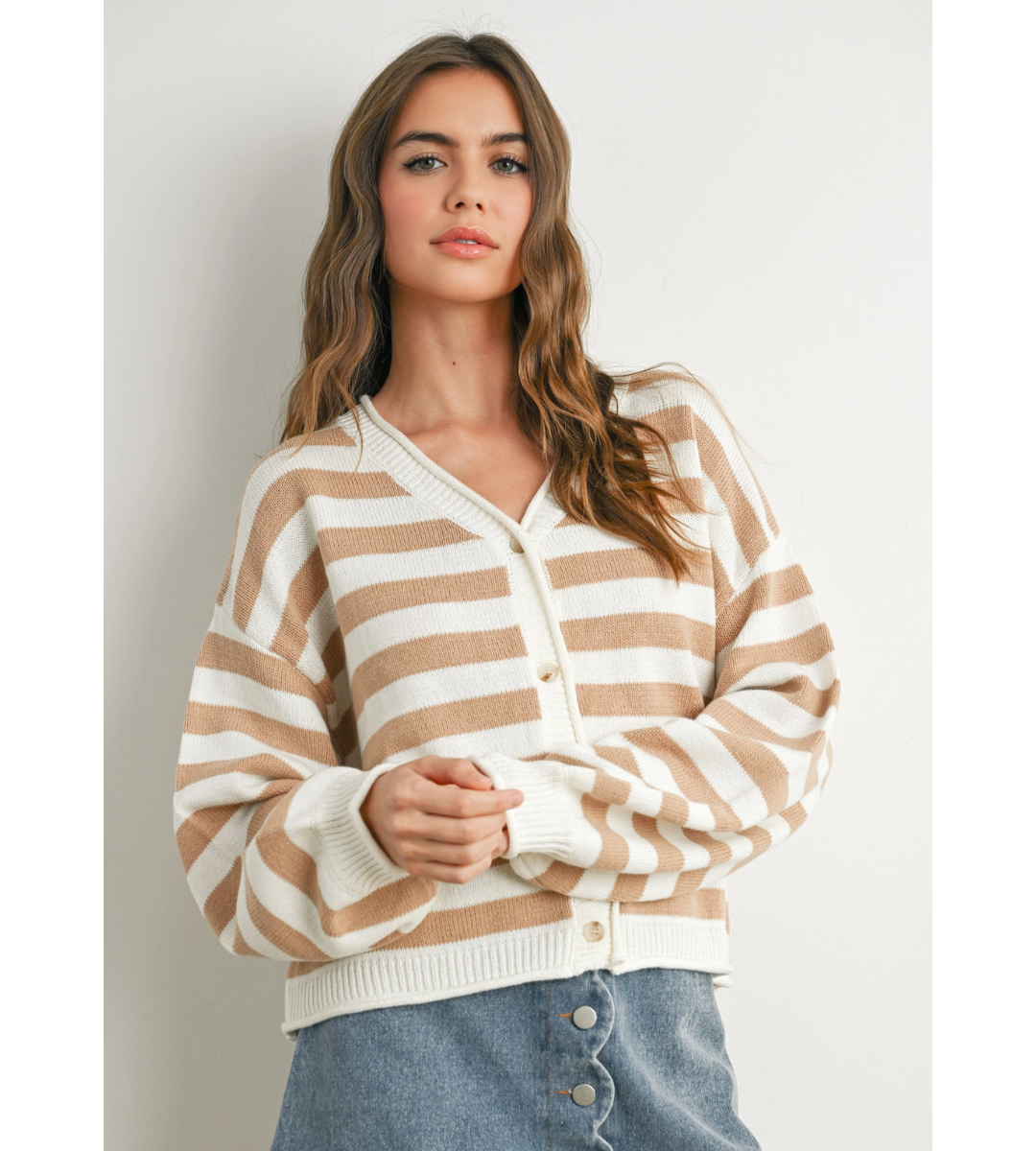 Step up your sweater game with the Button Front Striped Sweater, designed for effortless warmth and style. The unique striped pattern adds a modern twist to a classic silhouette, making it perfect for both casual days and cozy nights. Soft, breathable fabric ensures all-day comfort, while the button front lets you customize your look from open to snug.