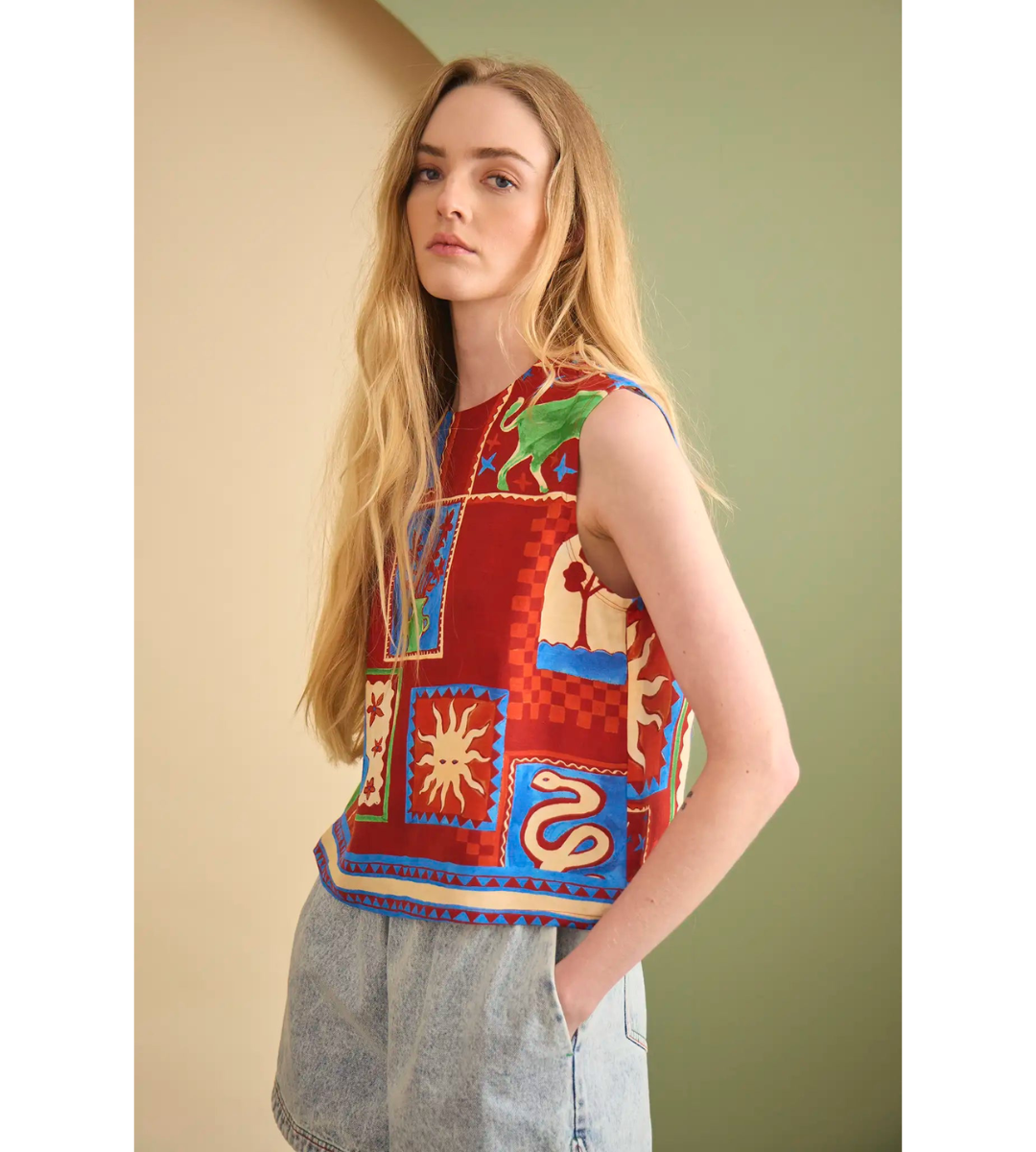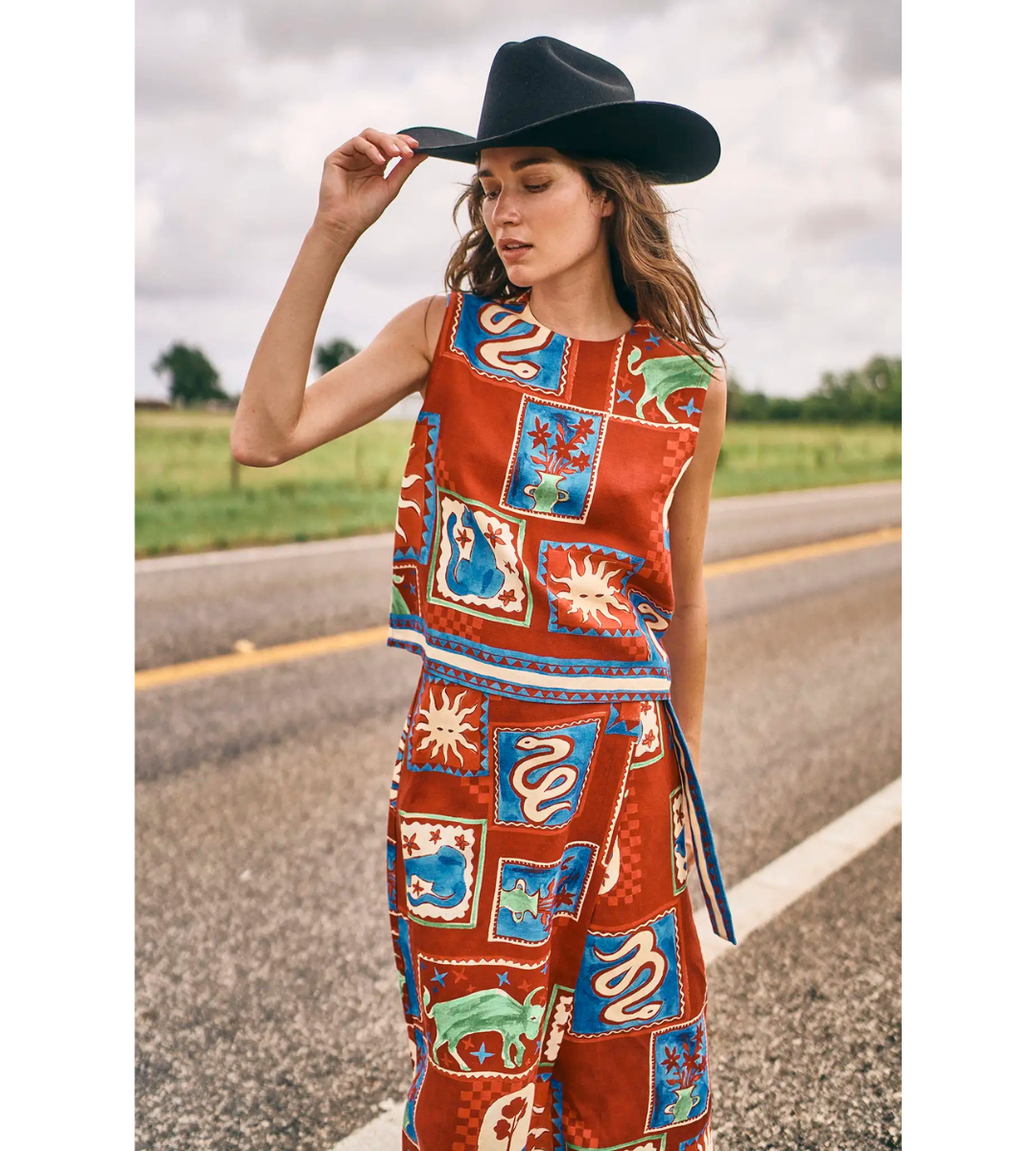 The Luna Top in Santa Fe print offers a modern, minimalist silhouette with thoughtful details that elevate everyday wear. Featuring a sleeveless crew neckline and subtle zipper closures along the shoulder line, this style brings quiet sophistication to your wardrobe. With a slightly longer length, Luna gives you the flexibility to style it tucked in or worn loose for a more relaxed feel.