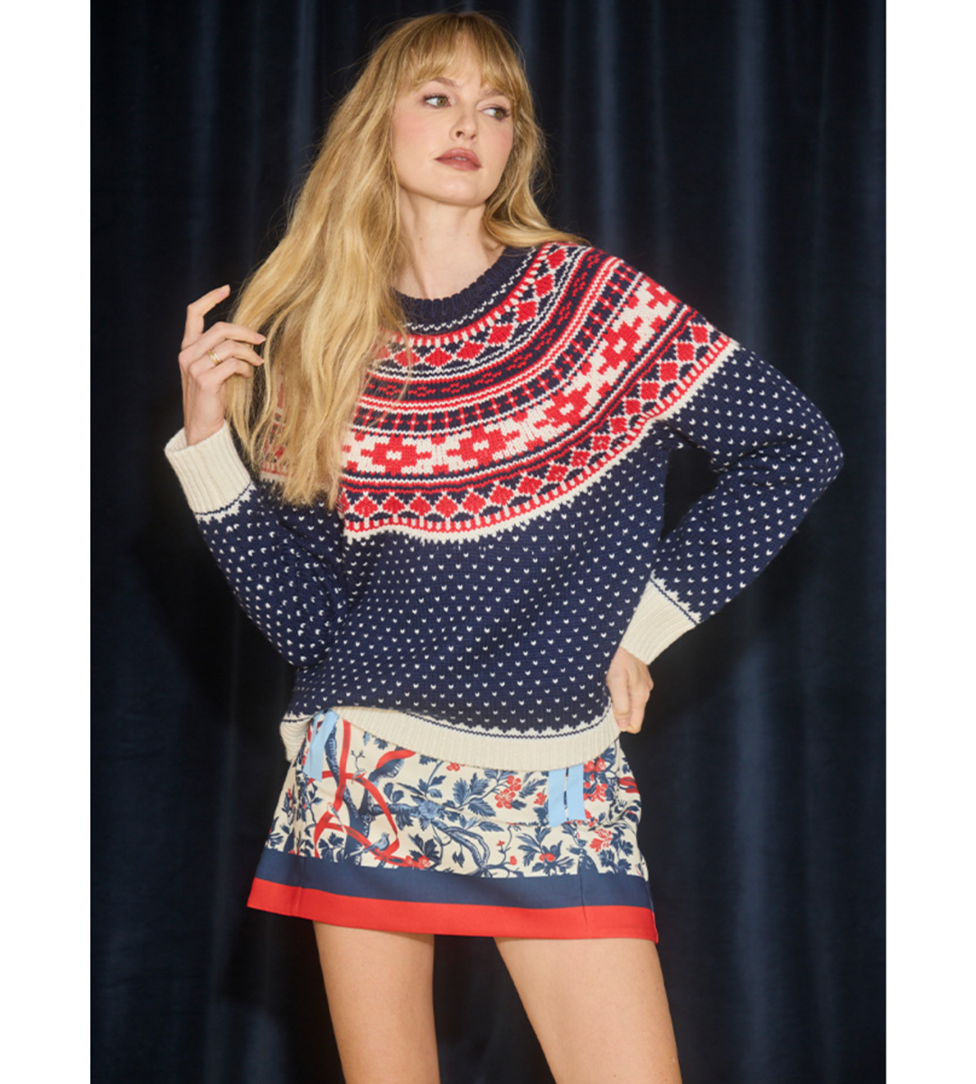 The Josie Sweater brings cozy meets chic in the St. Moritz Fair Isle print. With its classic winter pattern and soft, luxe feel, it’s the perfect statement knit for ski weekends, fireside lounging, or festive outings. Effortlessly stylish and endlessly cozy, this sweater makes cold-weather dressing feel downright glamorous.