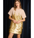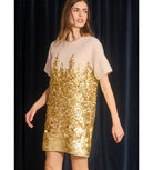 The Aerin Dress is made to shine this holiday season. This playful short dress dazzles in pink with shimmering gold sequin embellishments that catch every light — and every eye. Flirty, fun, and full of sparkle, it’s the ultimate party dress for festive nights, celebrations, and making unforgettable entrances.
