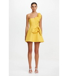 Radiating confidence in a bold hue, the Drake Mini Dress in Tuscan Sun is a sculptural statement for elevated moments. This one-shoulder silhouette is detailed with layered, embroidered petal accents across the bodice, adding dimensional texture. A softly flared mini skirt brings balance to the structured form.
