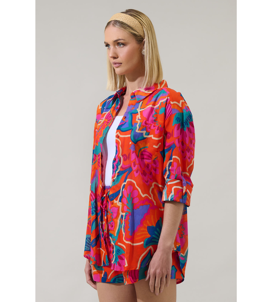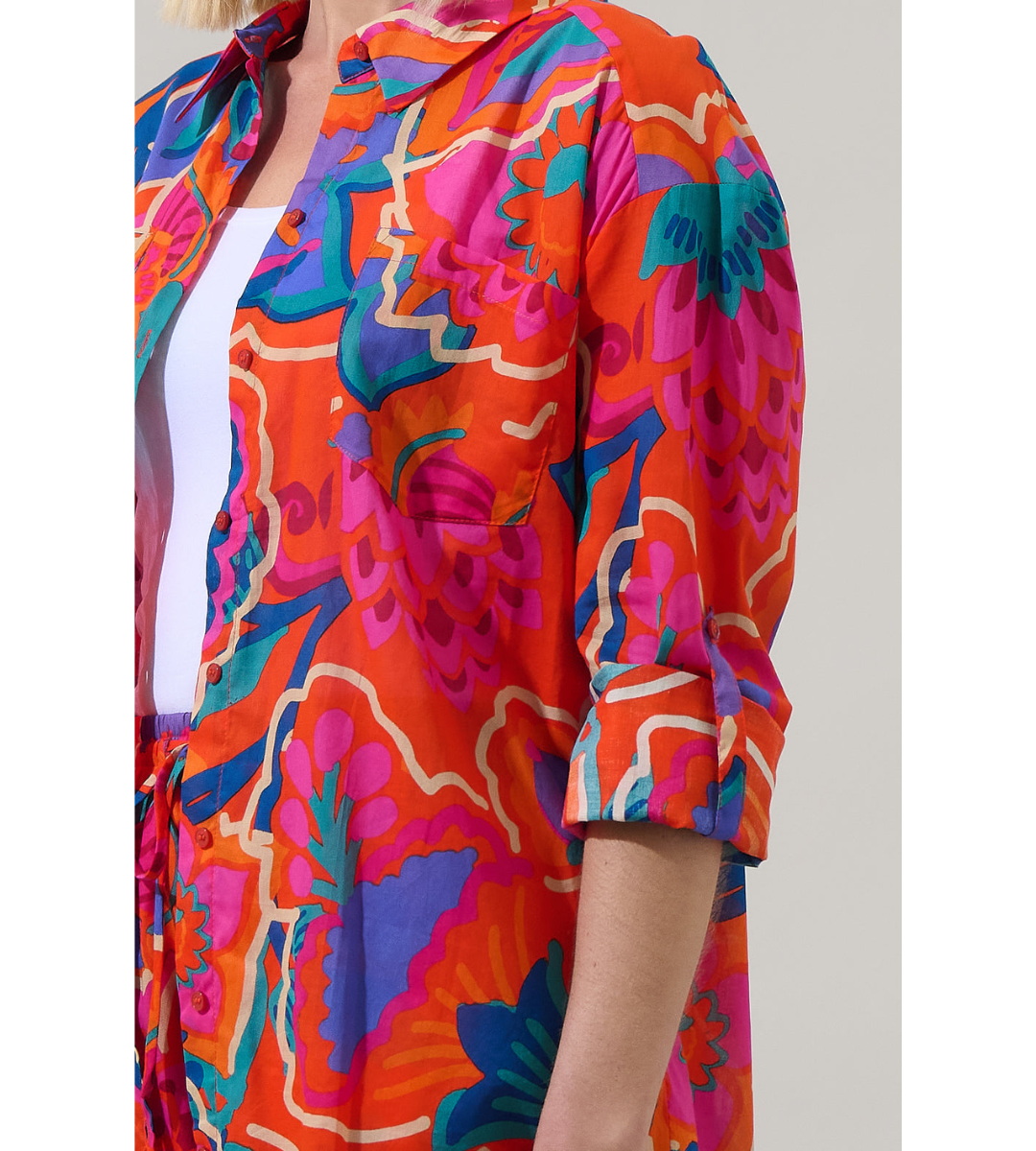 Vacation mode activated! The Kahlia Tropics Aya Button Down Shirt has a vibrant colorful design ready to make you look the prettiest.