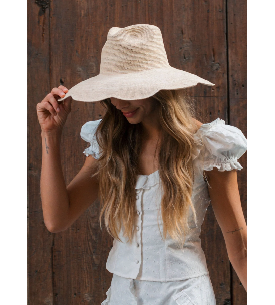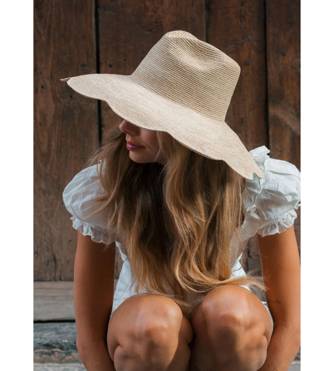 - Inspired by our popular crochet scallop bucket hat, we've remixed this style with a structured crown and a broader scallop brim.