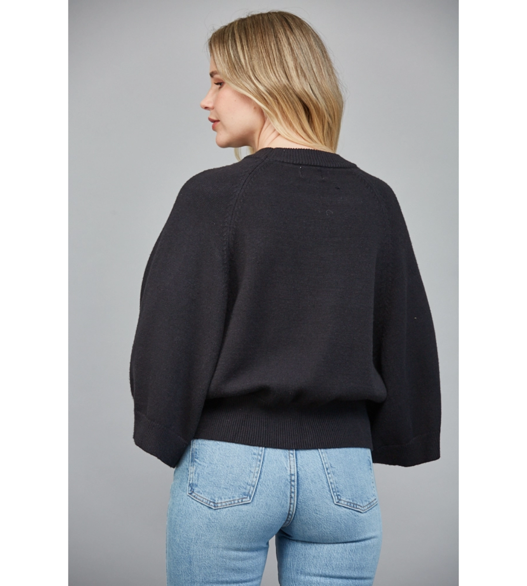 The reglan black sweater is a cozy, everyday essential designed with soft, warm fabric and relaxed raglan sleeves for an effortlessly laid-back look.