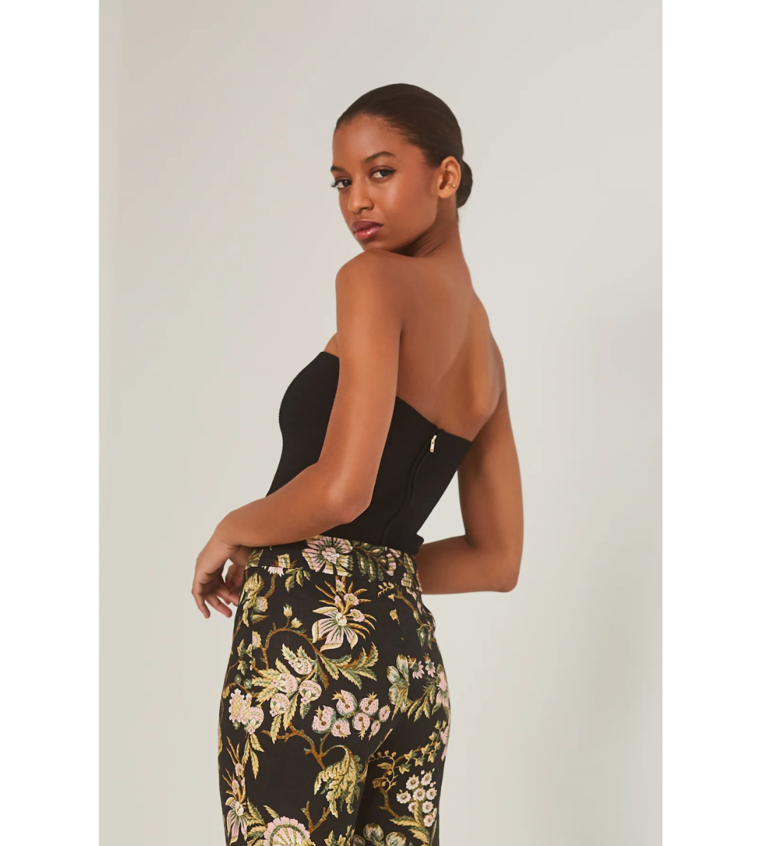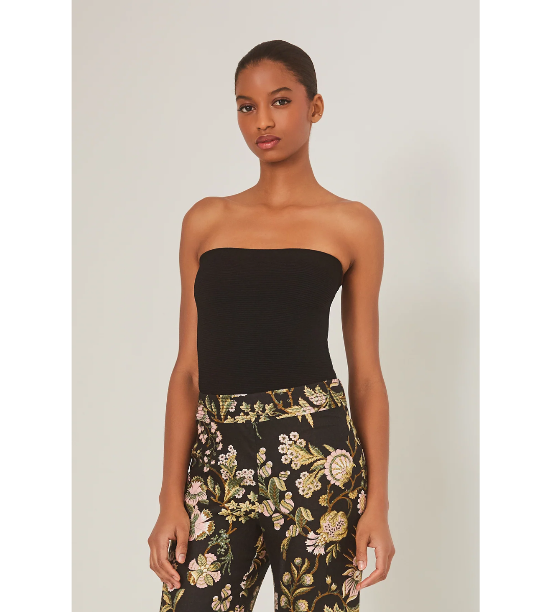- Fitted Ottoman ribbed tube top with center back gold zipper