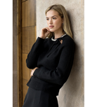 Elevate your knitwear game with a sweater that’s anything but basic. This piece takes the cozy comfort of a classic black knit and gives it a high-fashion, edgy upgrade.