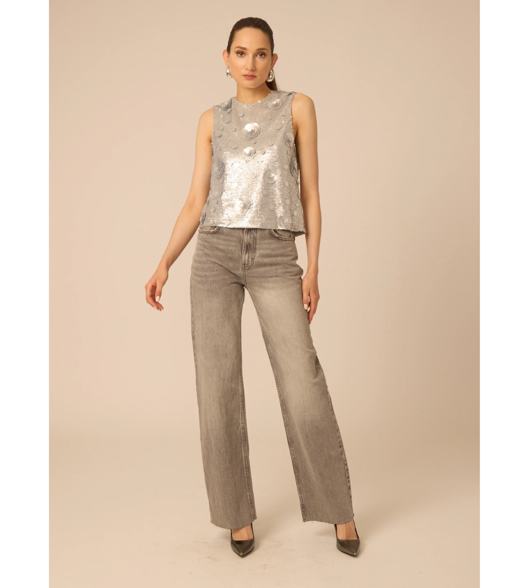 The sleeveless, straight-cut silhouette keeps the look modern and effortless, making it perfect for pairing with denim for a chic casual vibe or dressing up for holiday parties and nights out.