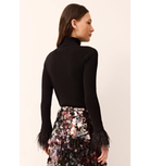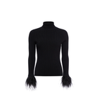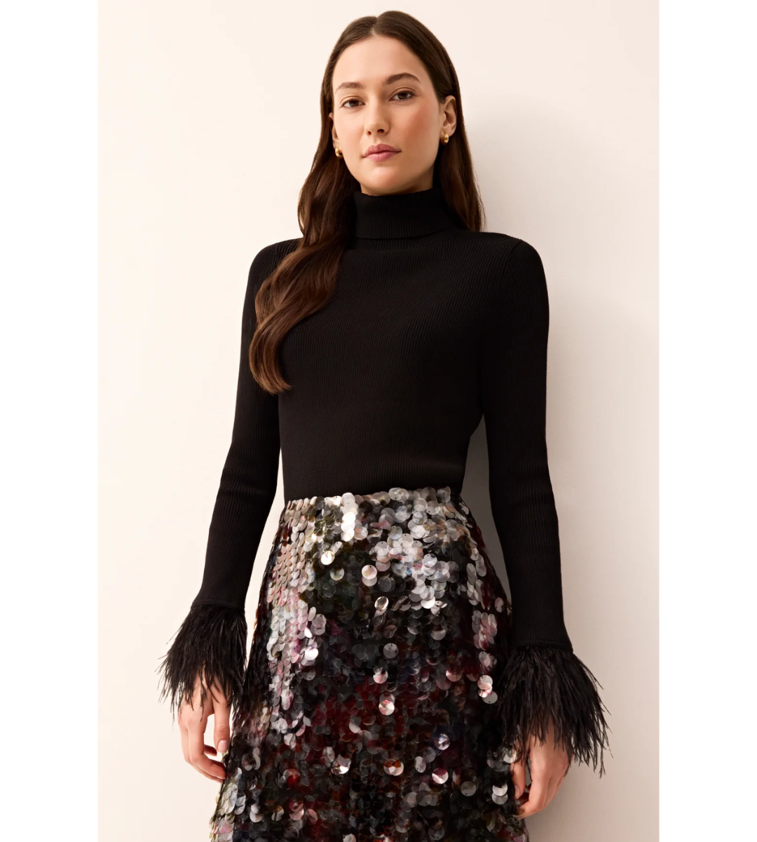 BEST SELLER ALERT! A classic turtleneck reimagined for the holidays with flirty feather-trimmed cuffs. The ribbed, form-fitting silhouette is the kind of layering piece holiday capsule wardrobes are built around.