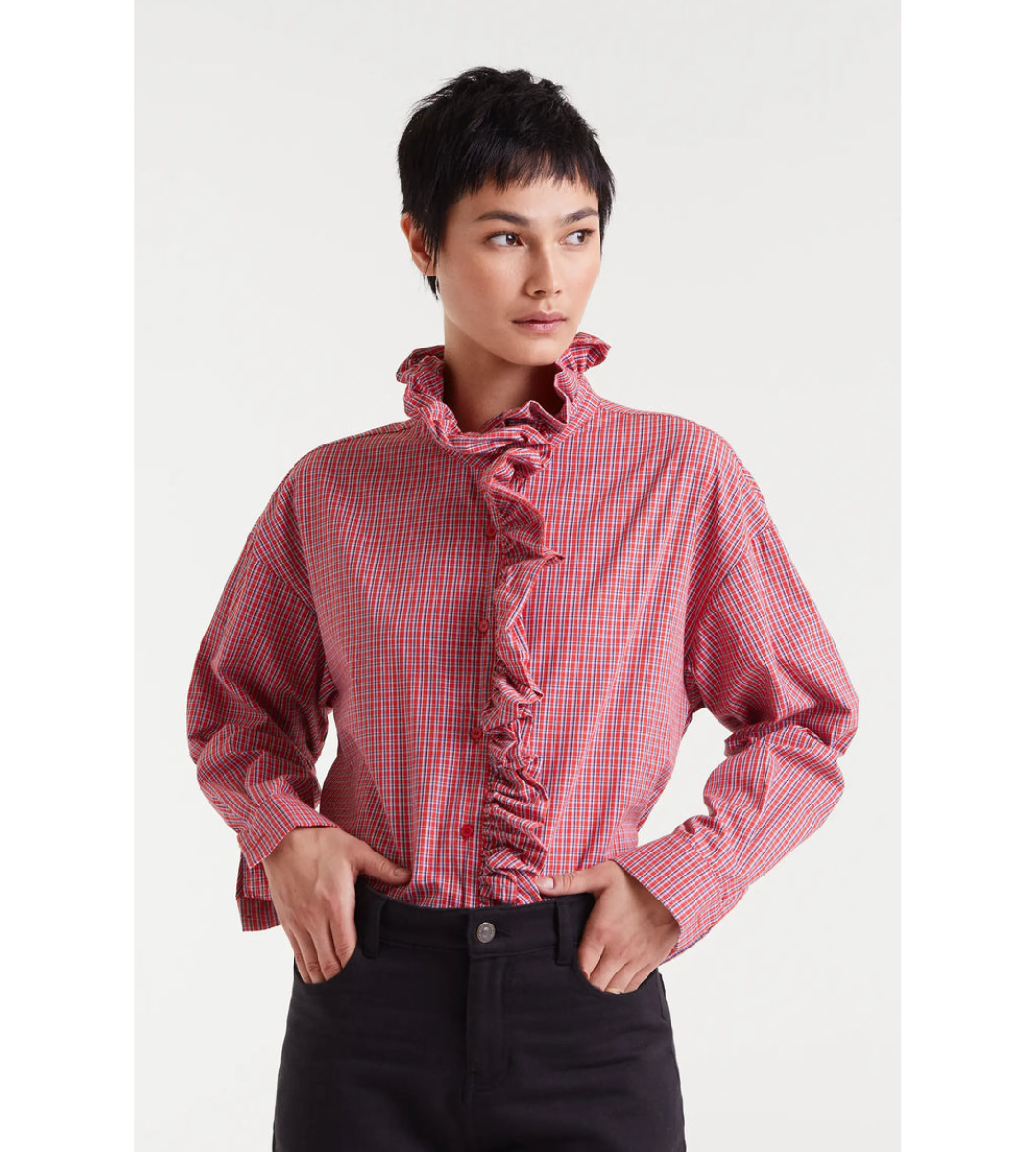Finley Embroidered Hem Button Up