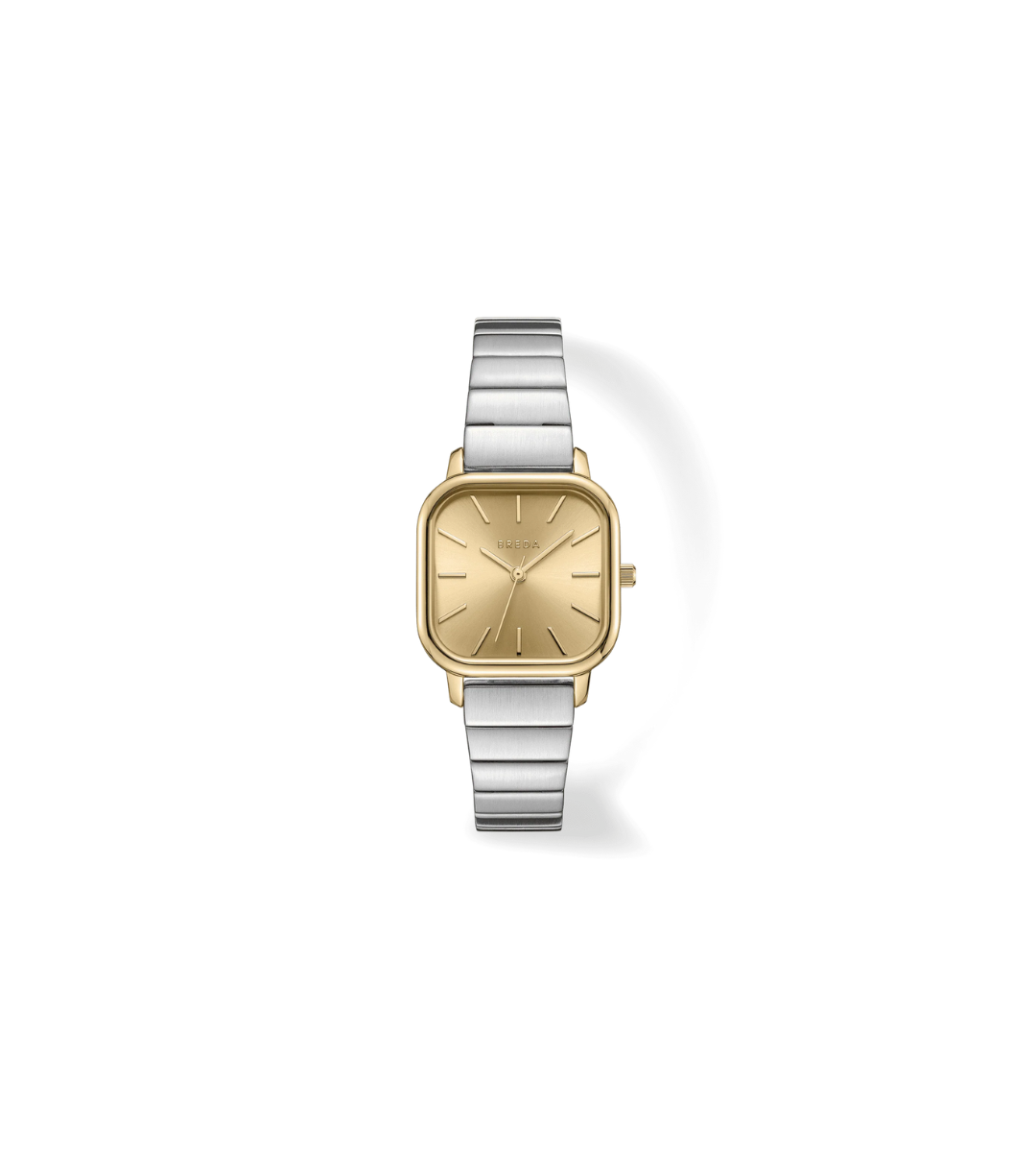 A modern approach to a distinctive and classic style. The Esther carries a bold 26mm square case, sun-ray gold brushed dial and fastens with a gold-plated stainless steel bracelet. A style that transcends occasion or trend, created with timeless design in mind.