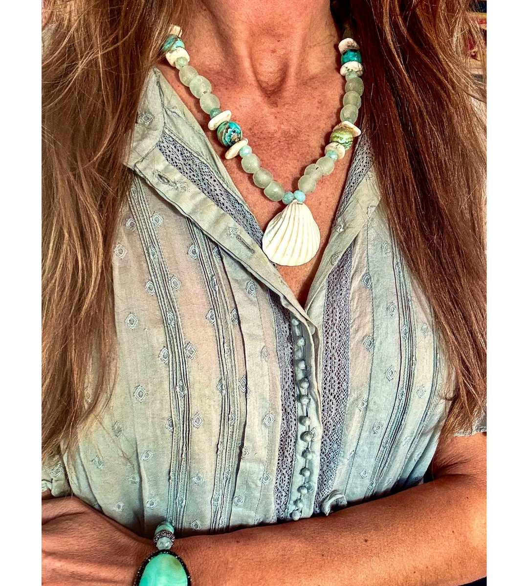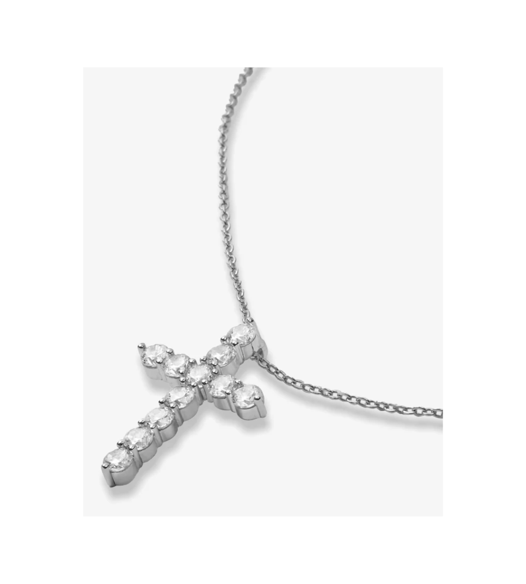 Oh She Fancy Blue Opal Cross Pendant 18"