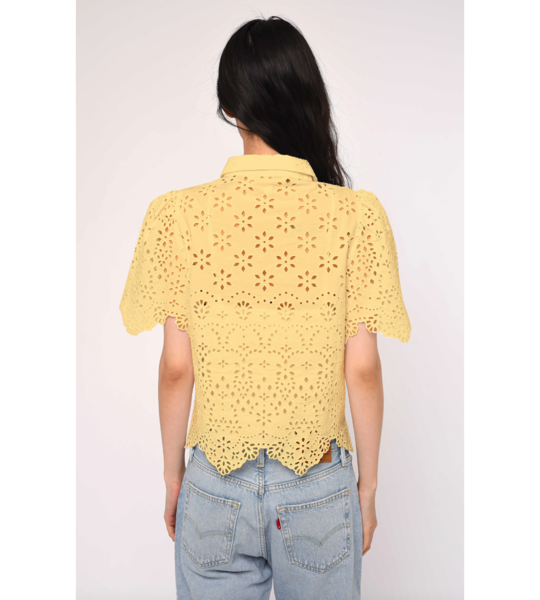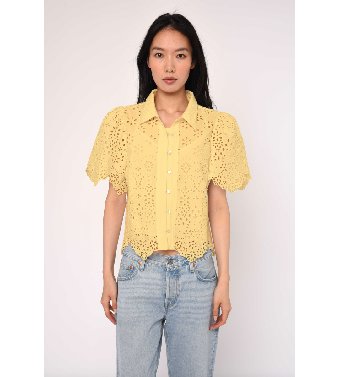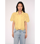 The Abigail Top is a high-end cotton poplin piece featuring intricate schiffli embroidery, often styled for a crisp, airy look. It frequently features a button-through front and a relaxed fit, making it a versatile option for layering or wearing on its own.