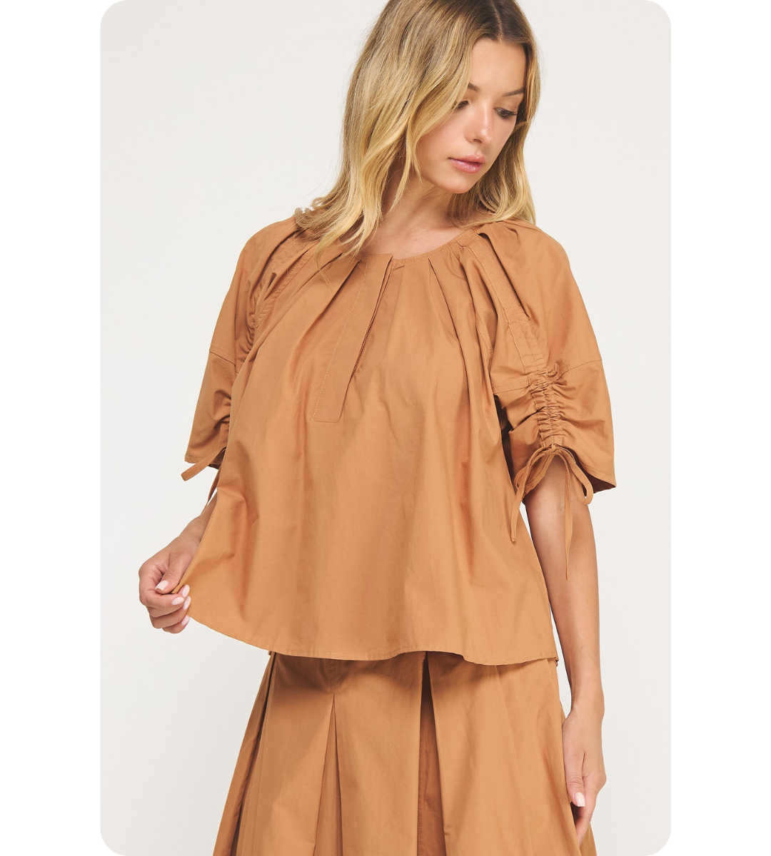 The Brisby Top in Mocha offers understated elegance with a versatile neutral tone. Made from breathable pleated cotton, its adjustable tie-detail sleeves add charm and functionality to the relaxed fit. A timeless staple that transitions seamlessly from casual days to dressed-up evenings.