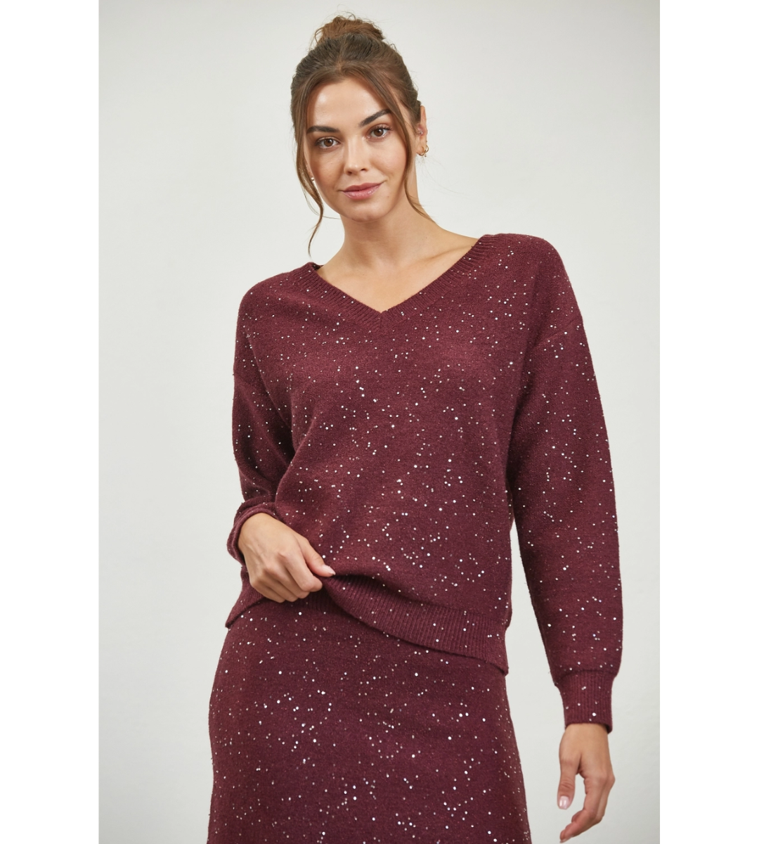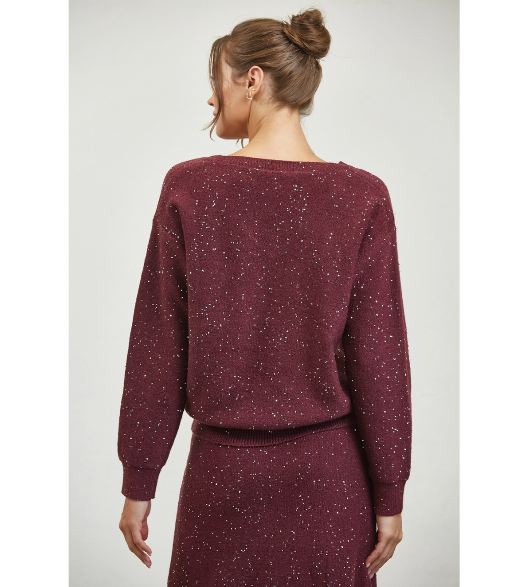Elevate your everyday knitwear with this sparkling V-neck sweater, designed to bring effortless chic to any occasion.