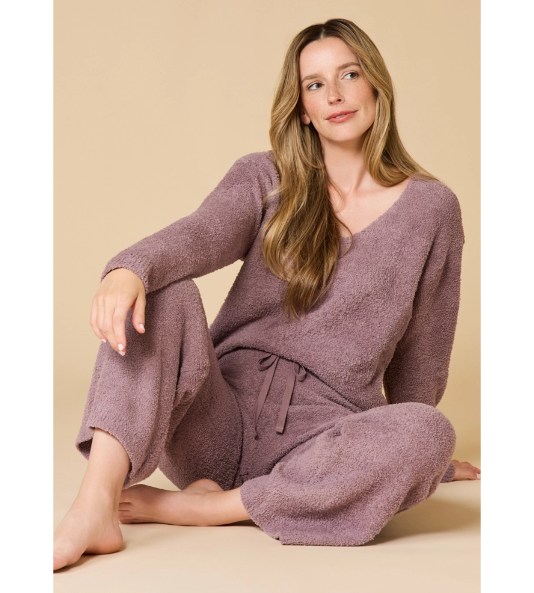 This refined ensemble features a loose, straight-leg design paired with a classic v-neckline that flatters all figures. Its raw hem makes it down-to-earth in playful contrast to its deliberate and sophisticated design. This is a set you will want to live in.