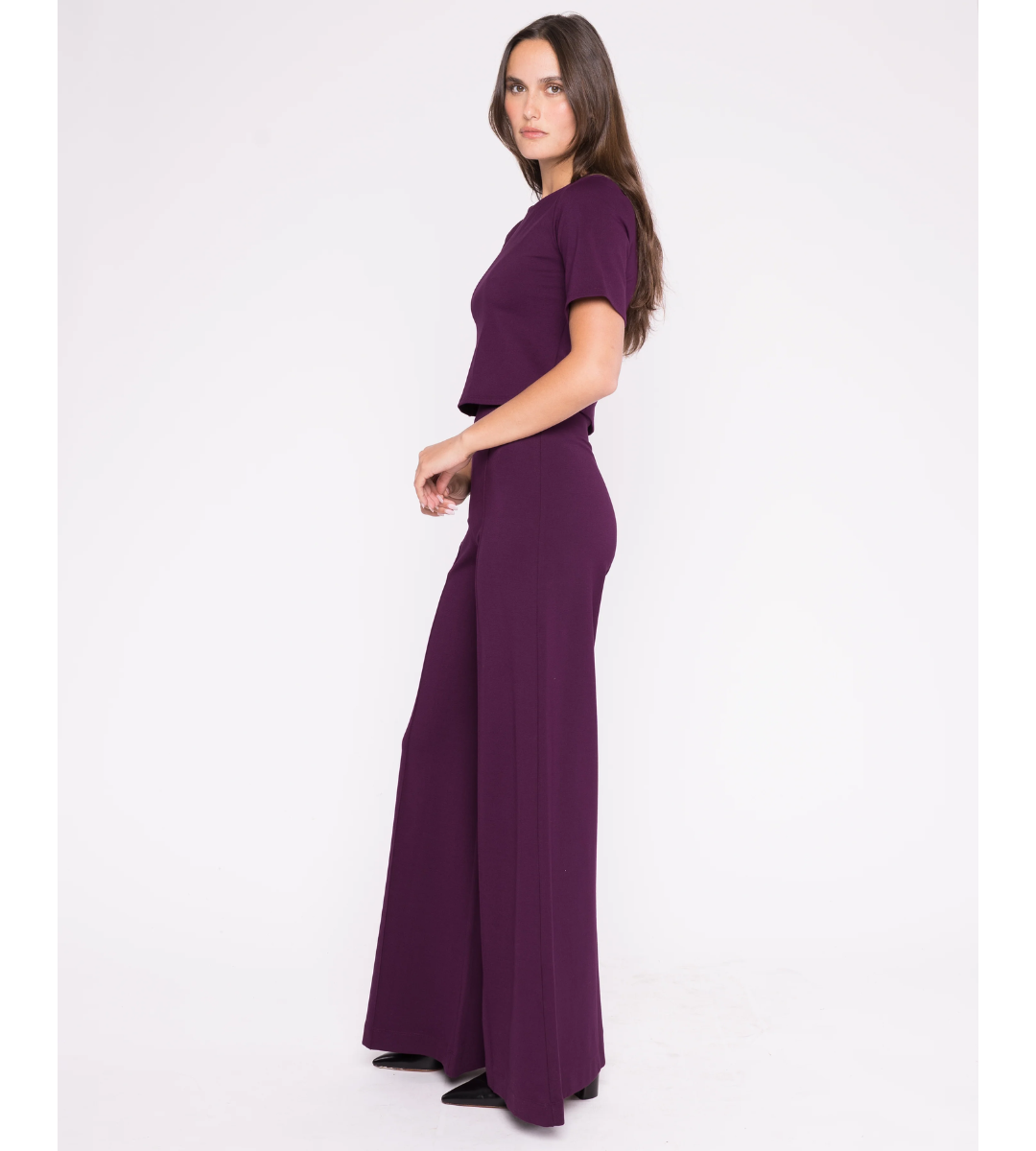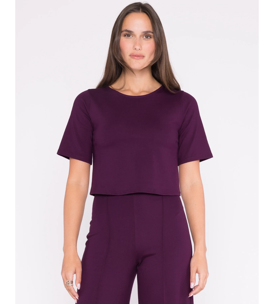 Structured, chic, and effortless. This modern silhouette hits at the natural waist with a flattering square cut, tailored sleeves, and a refined finish. Crafted from signature luxe ponte knit, it blends the polish of suiting with the ease of a knit — designed to pair perfectly with our iconic wide-leg pants for a sleek, coordinated look.