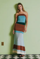 Color block knit skirt and matching strapless tube top.