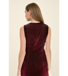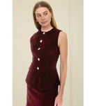 Polished and versatile, this sleeveless vest top is designed with a refined round neckline and statement gold button hardware down the front. A subtle split hem adds movement and ease, while the fully lined construction ensures a smooth, tailored fit.