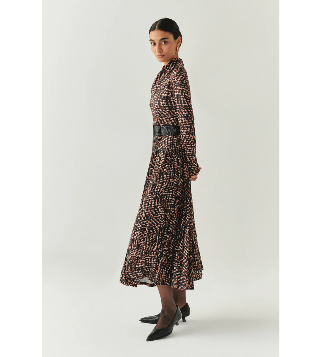 A sophisticated take on the mock neck dress. Aspyn’s flowing skirt and high neckline pair with a cinched waist for a refined, flattering look.