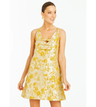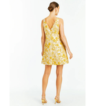Step out in style with this gorgeous sleeveless shift/A-line cocktail dress. This dress features a dazzling metallic gold and vibrant yellow floral jacquard fabric, giving it a luxurious, dimensional texture and a festive sheen. Perfect for holidays, parties, weddings, or any special event where you want to make a statement!