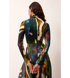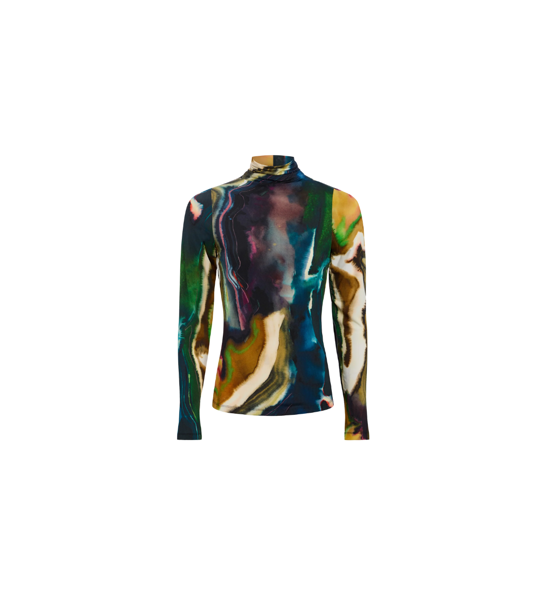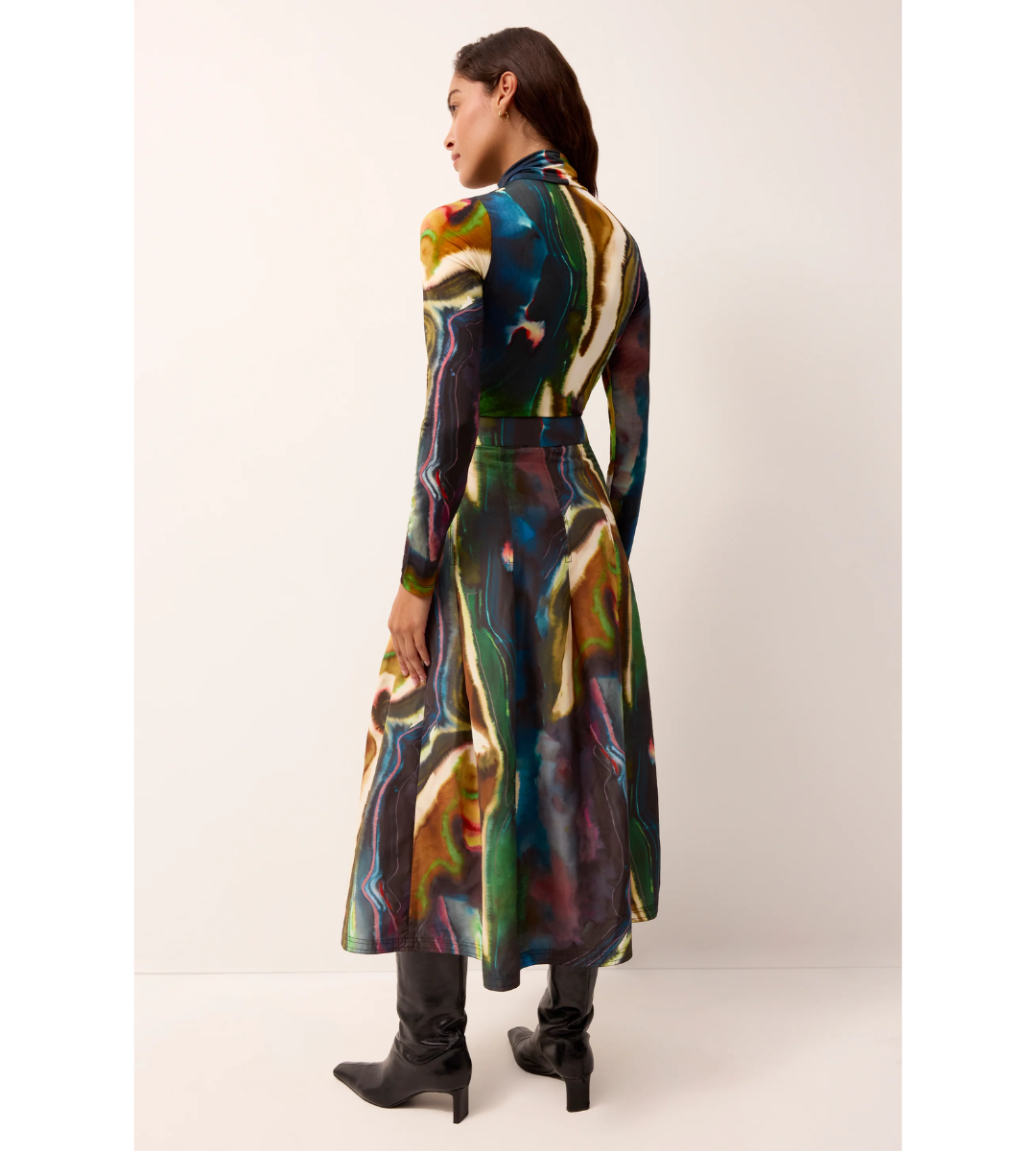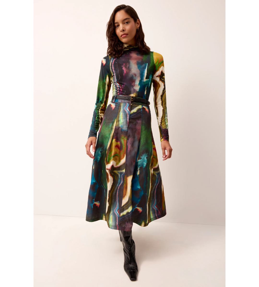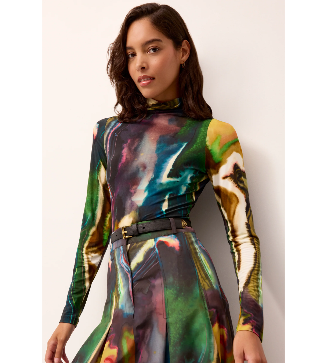 Cut from a sumptuous jersey knit, Marie Oliver’s figure-skimming Eloise top returns in Delta, a striated swirl of color in a moody seasonal palette.