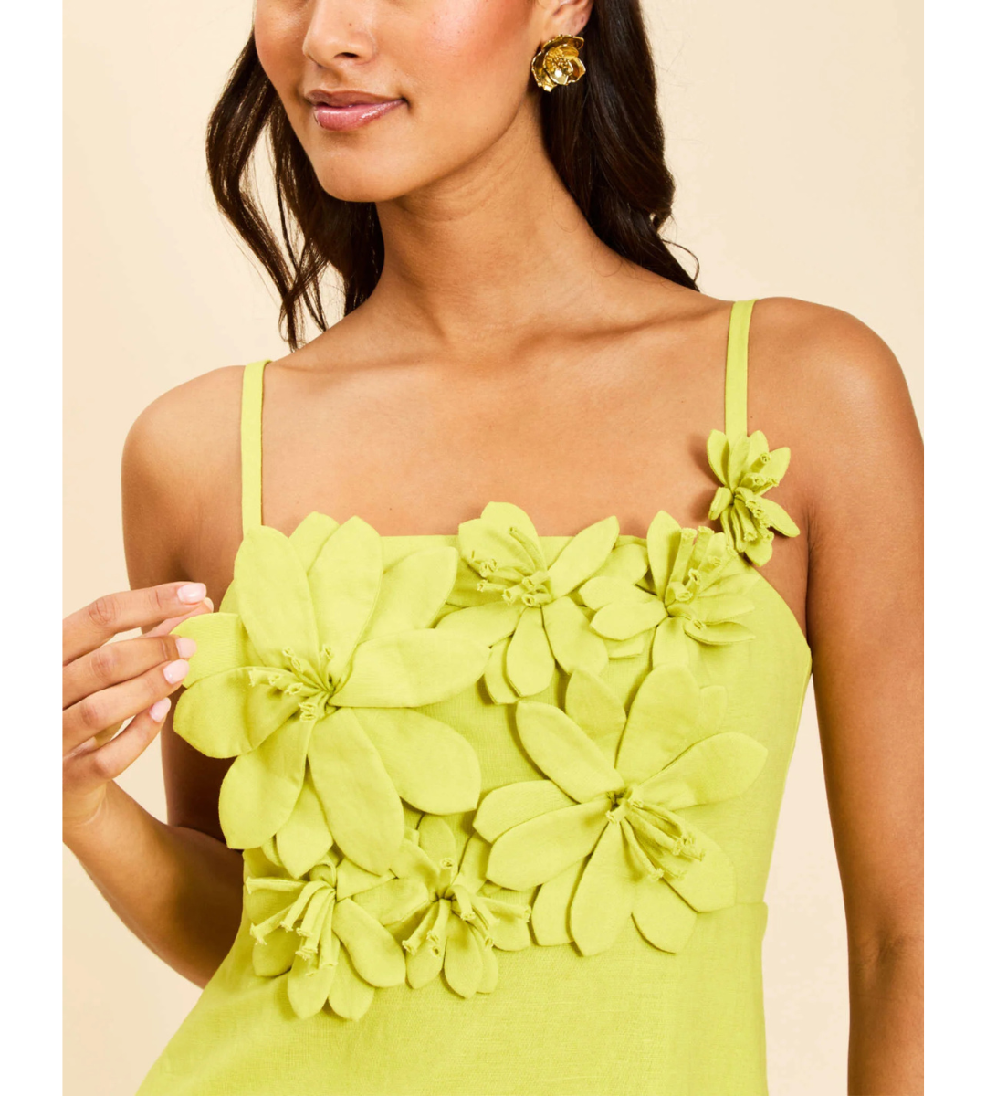 - Dimensional 3D floral appliqué that turns heads effortlessly
