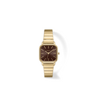 A modern approach to a distinctive and classic style. The Esther carries a bold 26mm square case, sun-ray brown brushed dial and fastens with a gold-plated stainless steel bracelet. A style that transcends occasion or trend, created with timeless design in mind.
