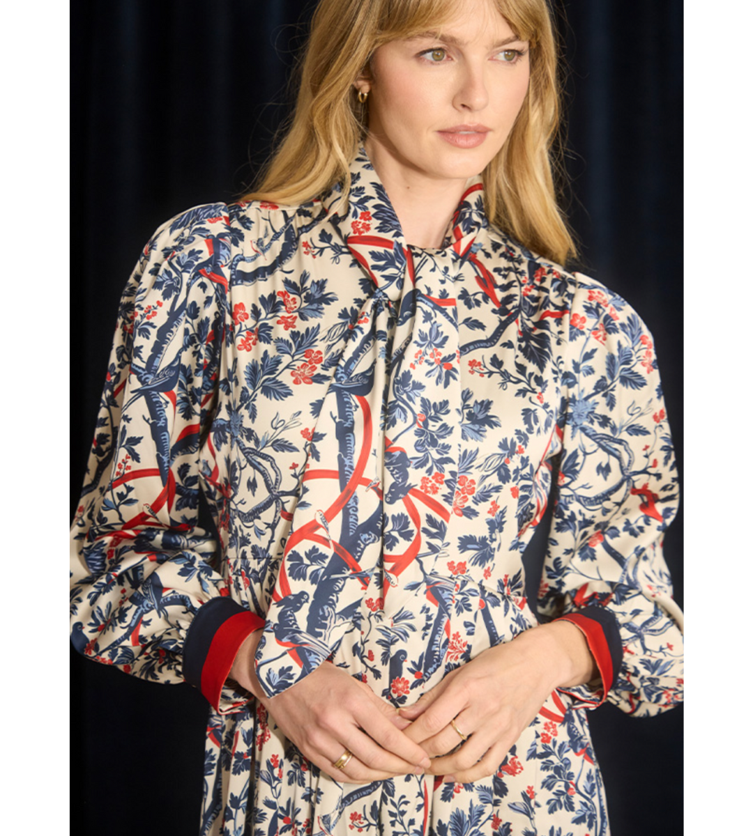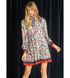 The Lila Dress in Gramercy Vine print is a timeless short dress that blends classic charm with a touch of fall romance. Featuring a mix of navy, red, and cream hues, this long-sleeve silhouette is effortlessly flattering and perfect for any occasion. Pair it with boots for a day out or heels for an elevated evening look.