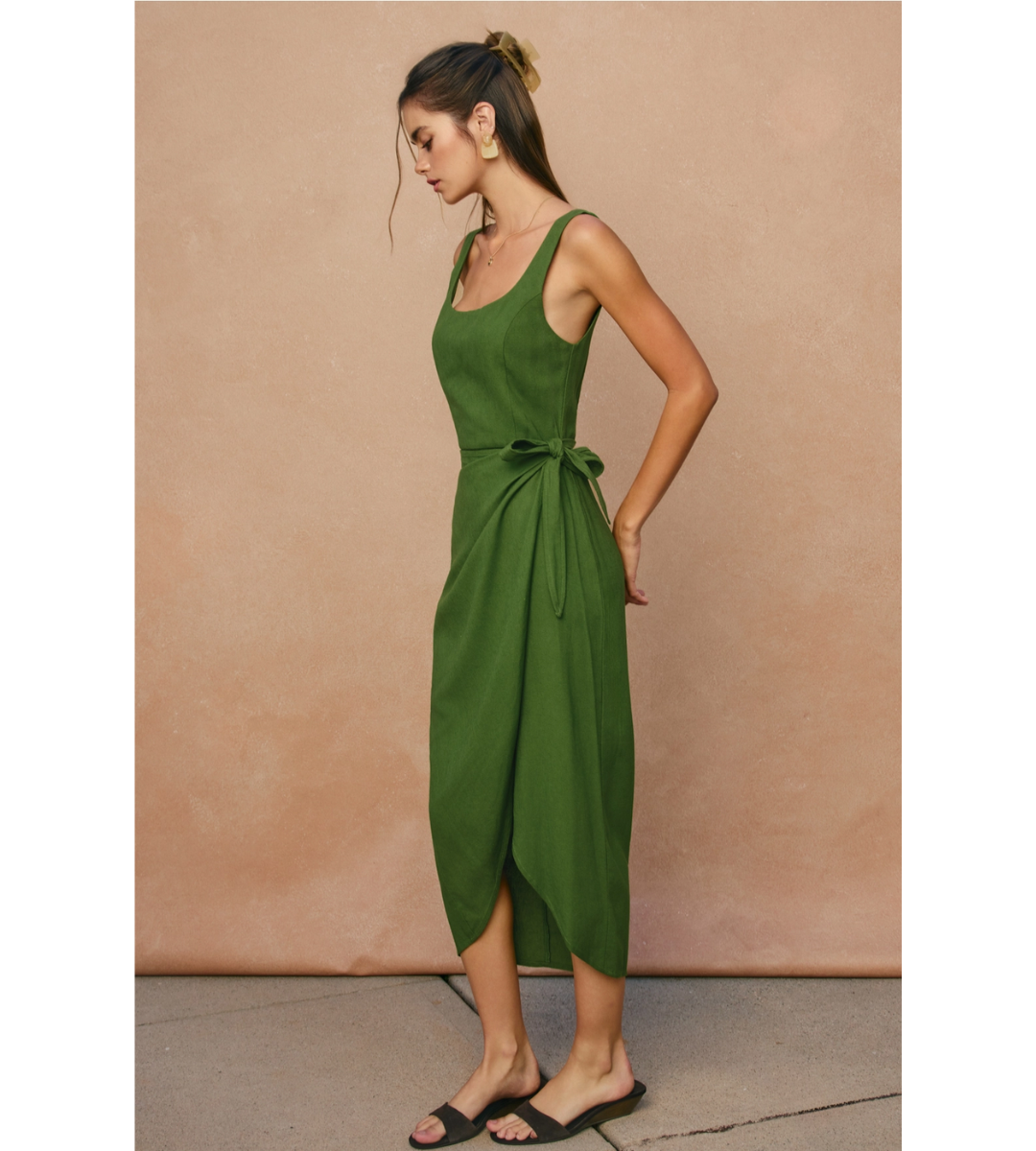 Meet the Luna Dress—a perfect blend of effortless elegance and modern sophistication. This stunning olive-green midi dress is designed to transition seamlessly from a sun-drenched brunch to an upscale evening event.