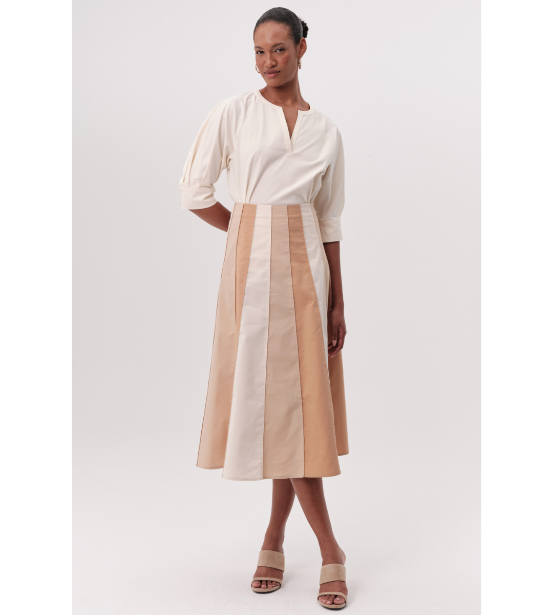 The Nikki Skirt is a chic midi skirt featuring soft tan-toned stripes and a sleek hidden zipper for a smooth, flattering fit. Effortlessly versatile and comfortable, it’s perfect for lunches, brunches, daytime outings, and carefree everyday fun. A timeless staple you’ll reach for again and again.