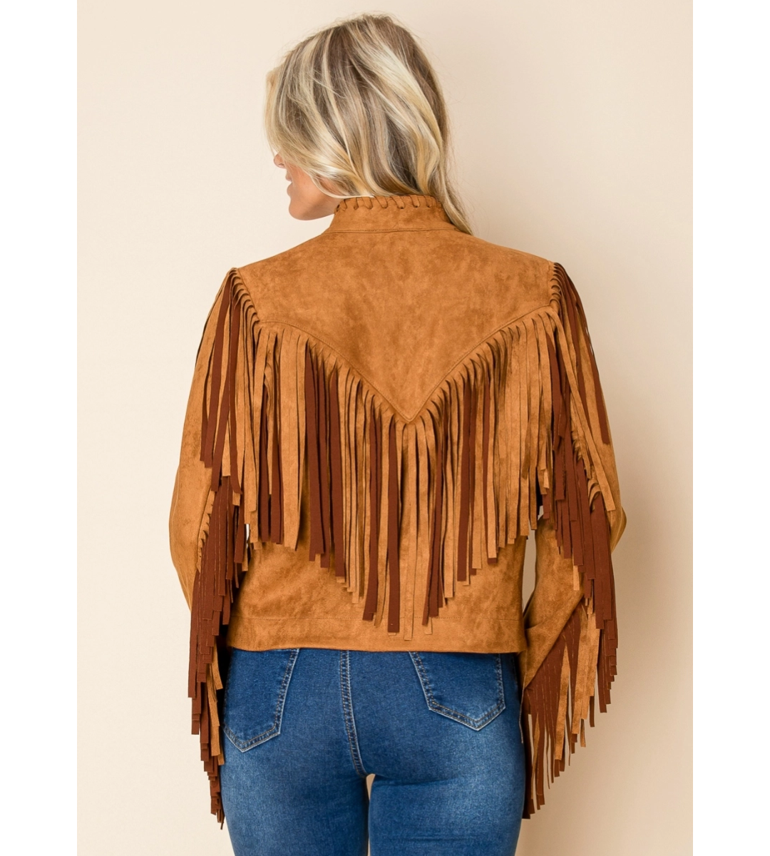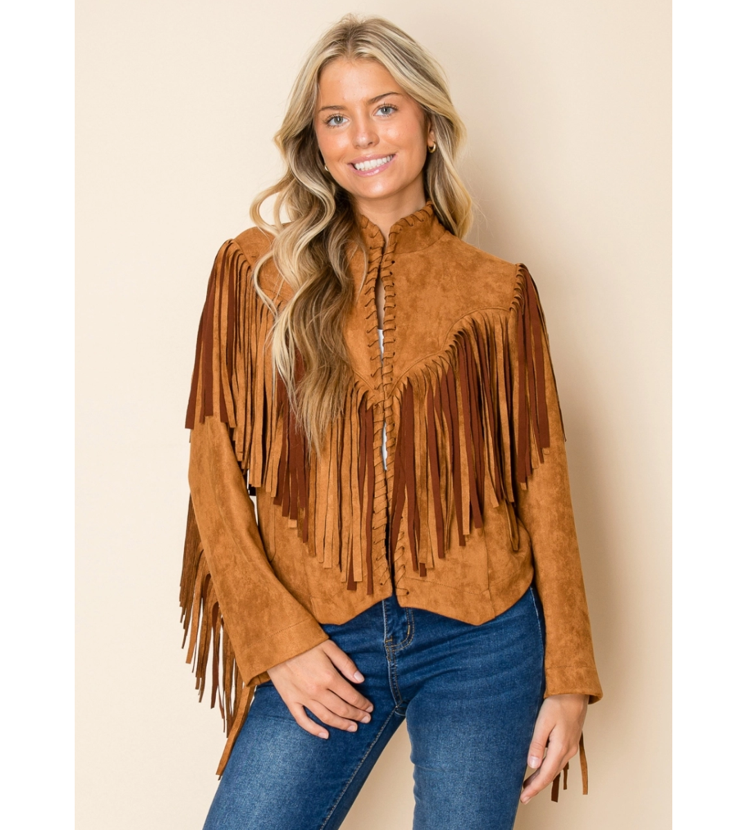Step into timeless Western charm with the Saddle Fringe Jacket, a statement piece that perfectly blends rugged heritage with modern, boho-chic style.