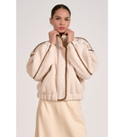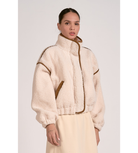 Cozy meets cool in this cream sherpa bomber jacket. With its plush texture, relaxed fit, and classic bomber silhouette, it’s the perfect mix of laid-back and luxe—ideal for chilly days when you still want to look effortlessly put-together.