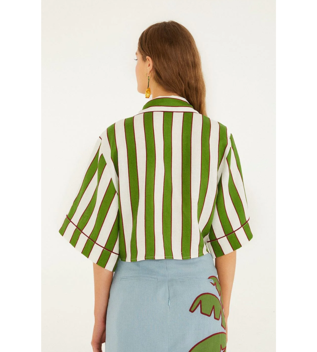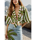 Breathe life into your wardrobe with the Black Spring Stripes Euroflax™ Premium Linen Short Sleeve Crop Top by FARM Rio. Crafted from breathable linen, its relaxed crop silhouette embraces effortless cool, while bold black and white stripes add a playful, modern edge.