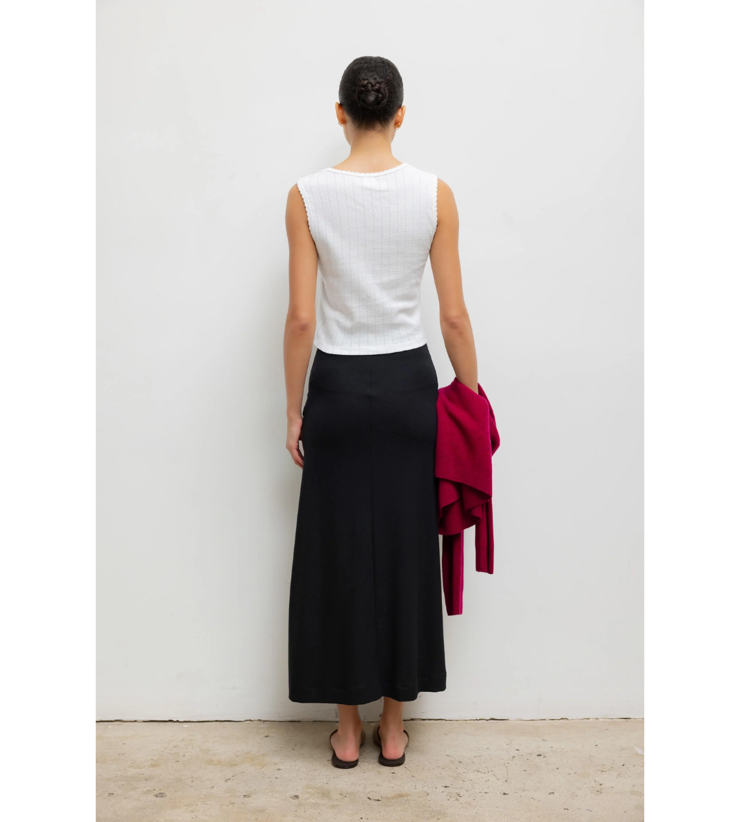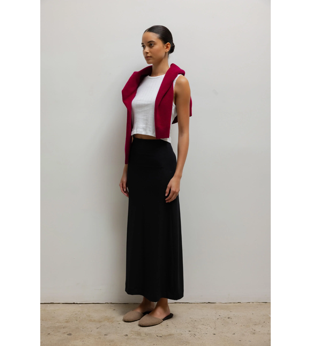 The Lauren Midi Skirt is an unbelievably soft brushed sweater jersey with a just-right amount of stretch.