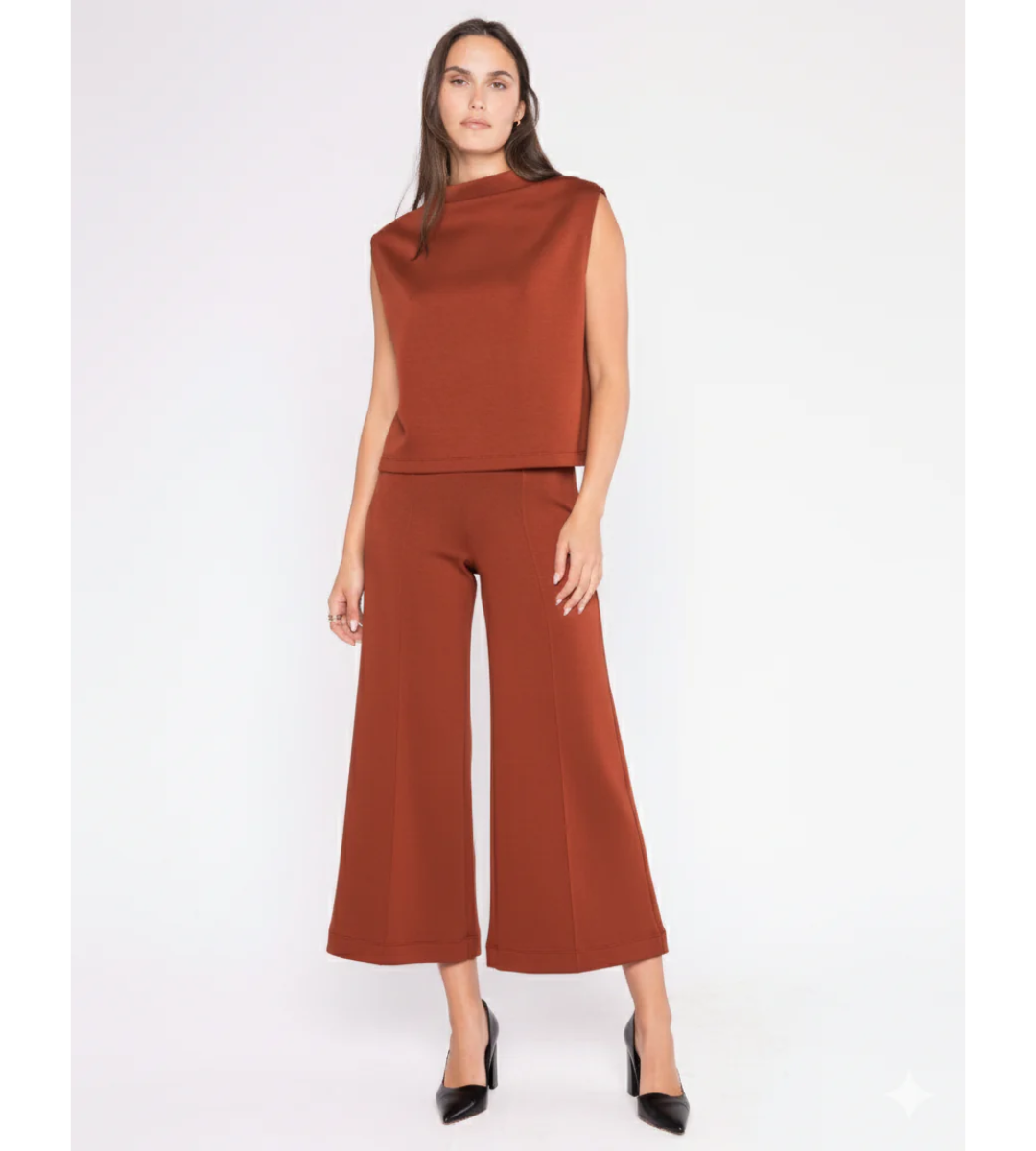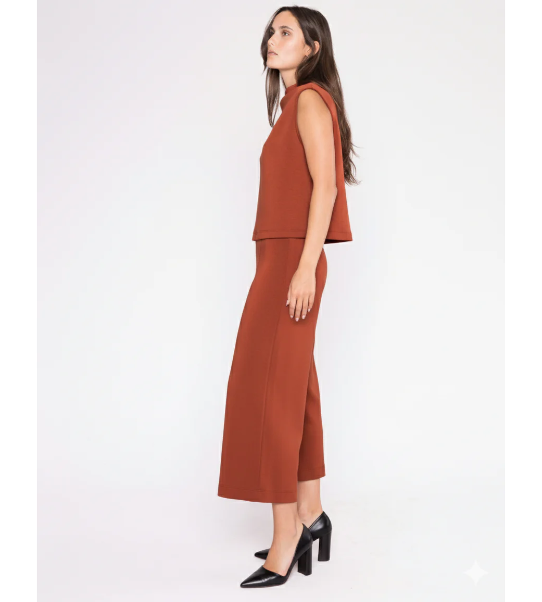 Reimagined in our buttery-soft modal-scuba fabric, this high-waisted cropped pant delivers the perfect balance of comfort and polish. With an exaggerated wide leg and tailored silhouette, it elongates the legs while offering effortless ease and movement.