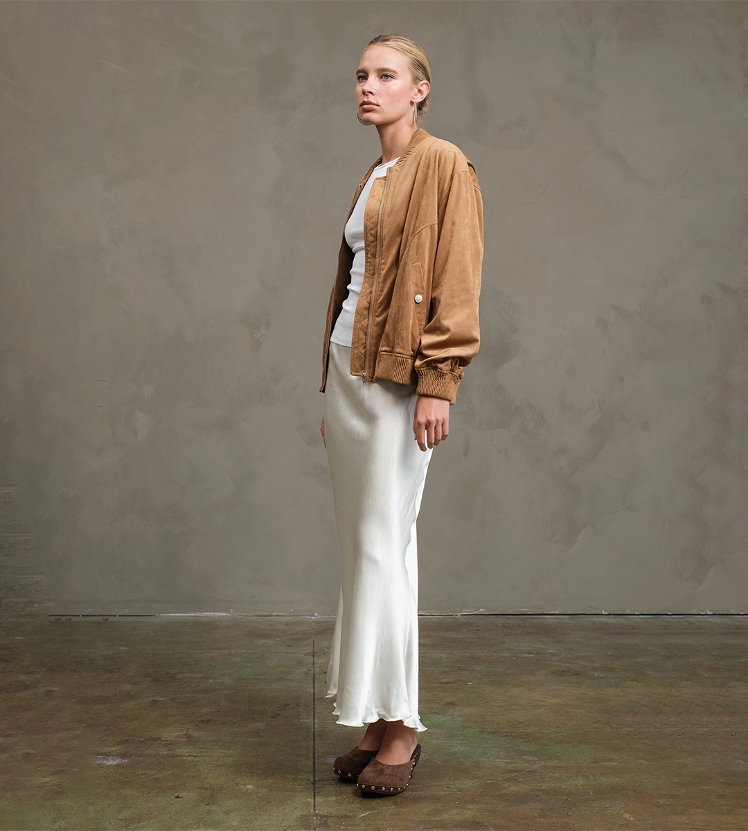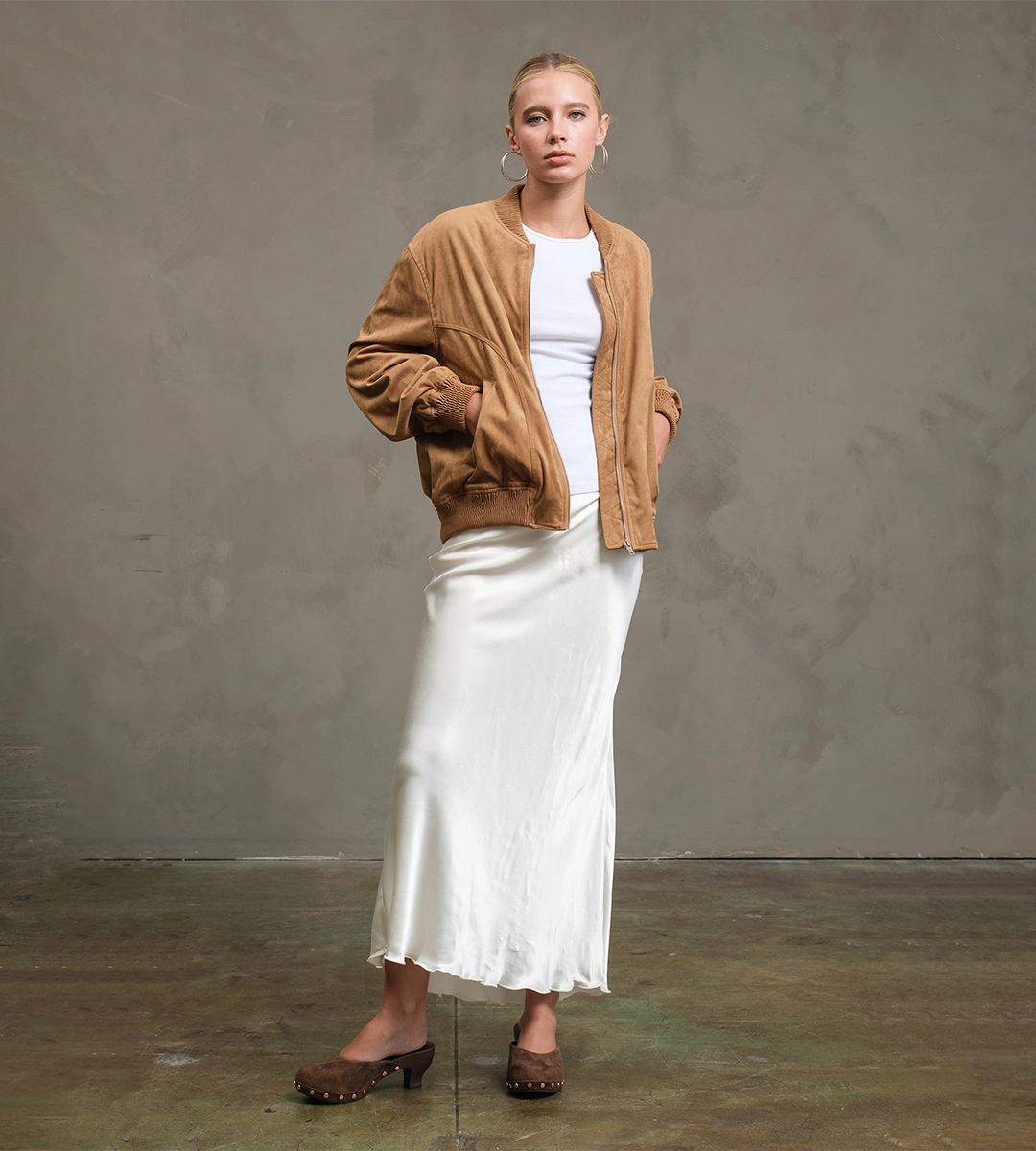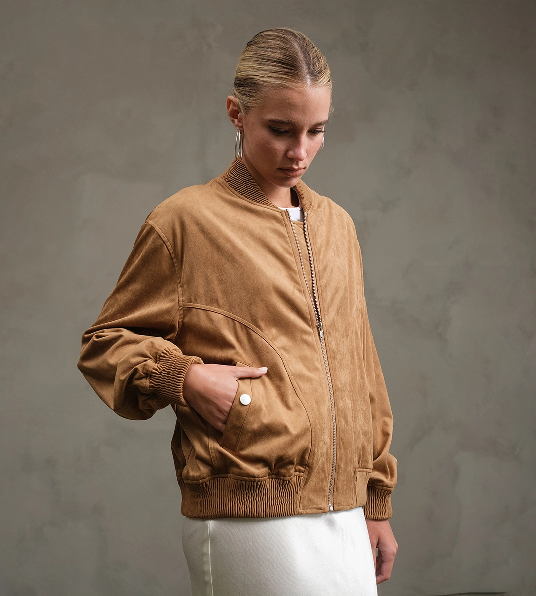 Soft suede blouson jacket -Full lElevate your outerwear collection with our Fairhope Jacket, a timeless soft suede blouson that blends classic tailoring with effortless comfort. Crafted from supple suede, this jacket features a relaxed silhouette with subtle structure, making it perfect for layering over any outfit—from casual denim to elevated evening looks. The fully lined interior ensures all-day comfort, while refined detailing adds a touch of sophistication.