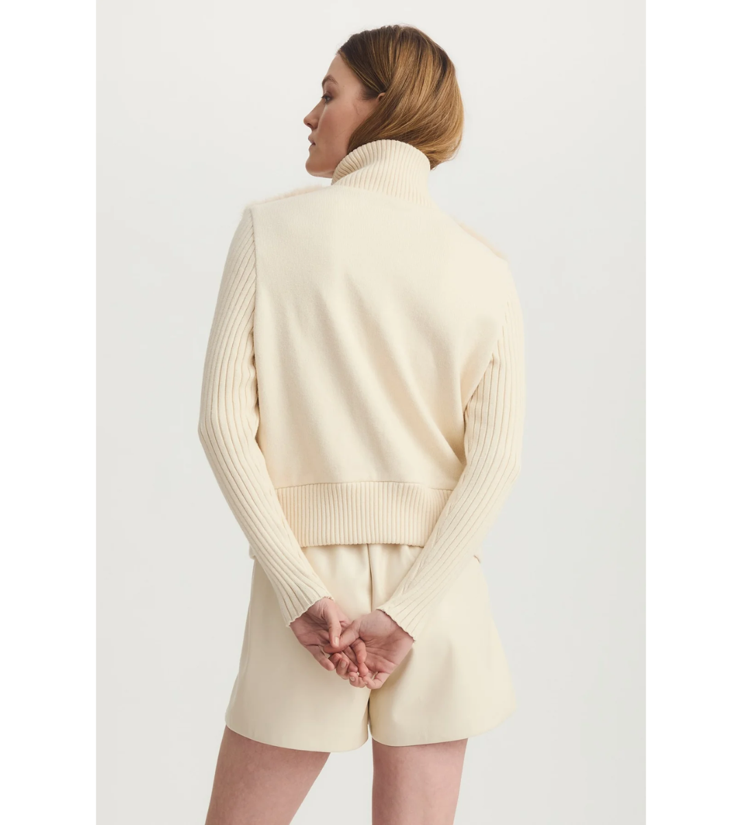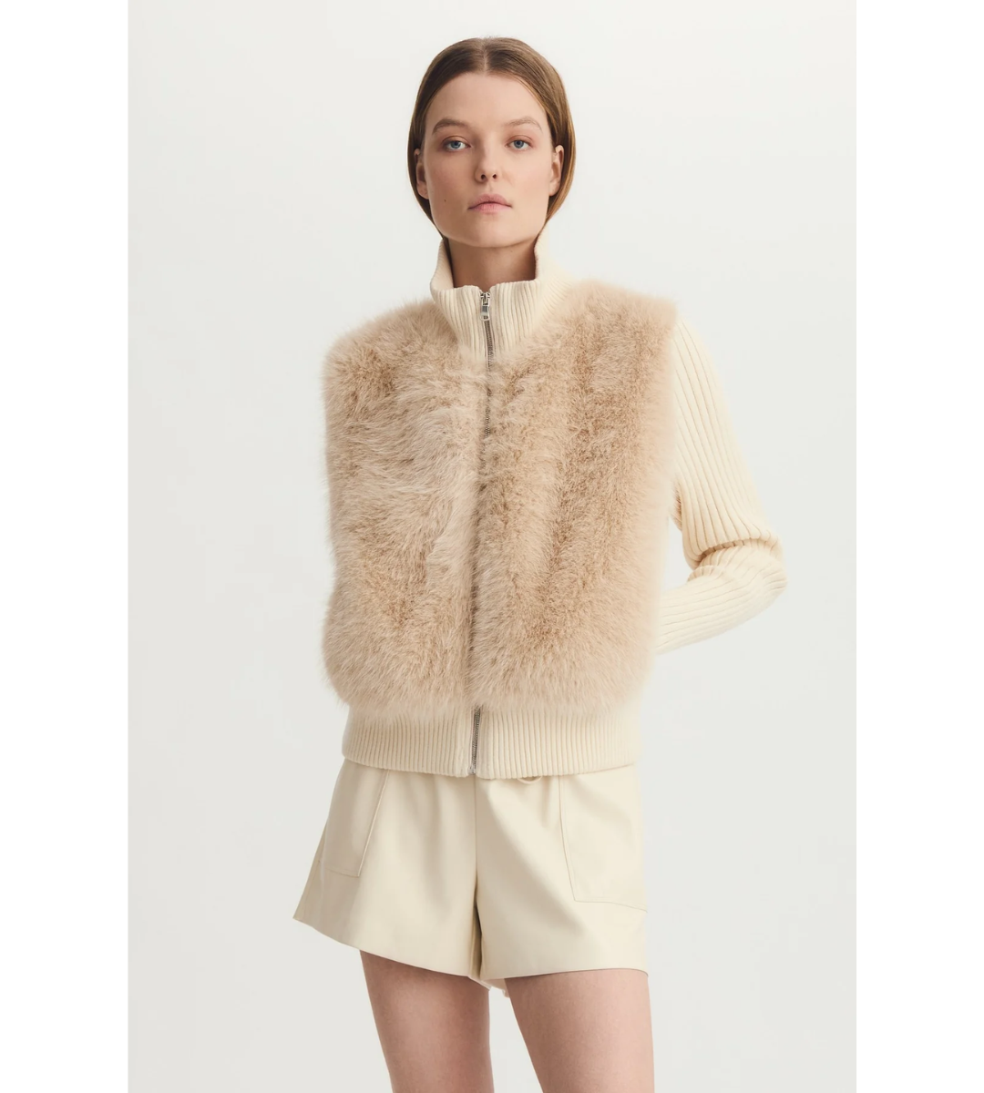 The Helios Vest is a statement piece that blends cozy texture with refined design. Featuring a plush, faux-fur front and ribbed knit back and trim, it offers the perfect mix of softness and structure. Its neutral cream tone makes it effortlessly versatile, ideal for layering over lightweight knits or blouses for a chic, polished look during cooler seasons.