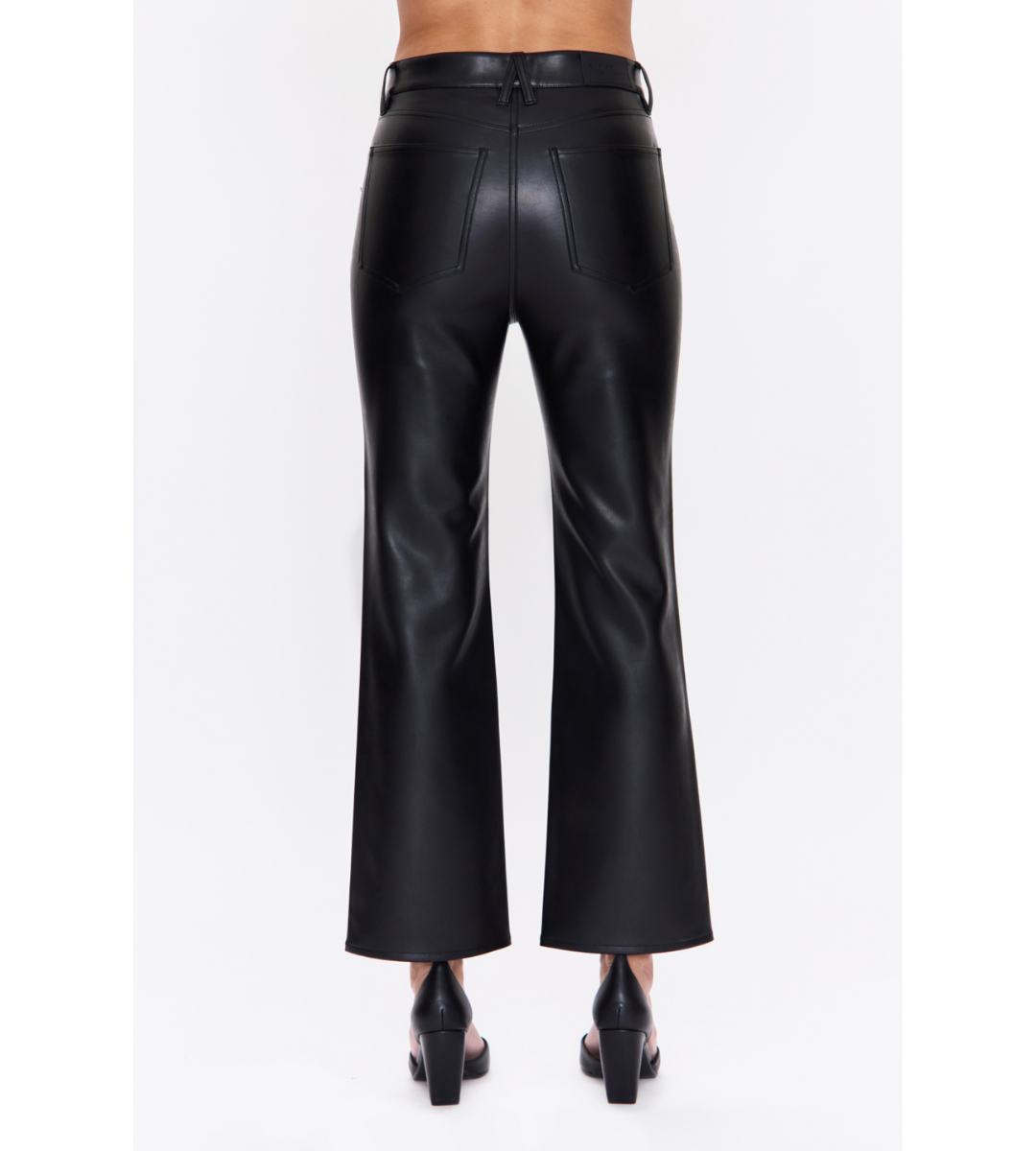 The Ally Jeans by Pistola are black vegan leather jeans perfect for fall. With a high-rise waist and cropped bootcut leg, they offer a modern, edgy look while maintaining comfort through a soft, stretchy fit. The sleek vegan leather adds a stylish, cruelty-free alternative to traditional denim, making them ideal for pairing with cozy sweaters, blazers, or layered tops. These jeans are a bold, versatile addition to any autumn wardrobe.