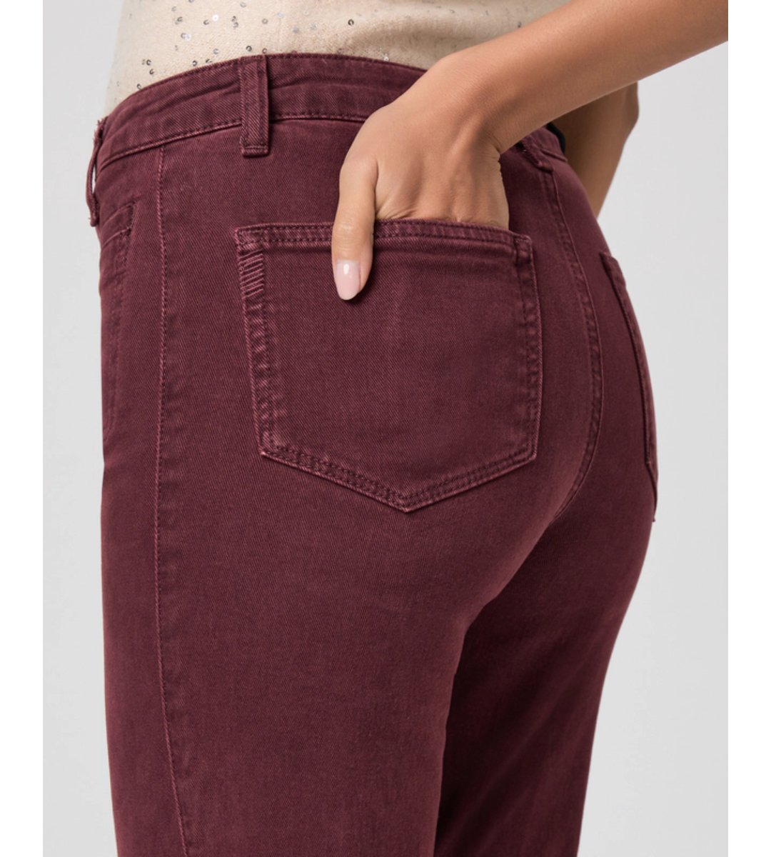 The Marlow Skimmer is designed to graze the top of the foot with a flare and can be easily paired back to flats or sandals. This pair is crafted from comfort stretch denim in a vintage-inspired dark oxblood red hue with welt stitch-through pockets and a clean hem.