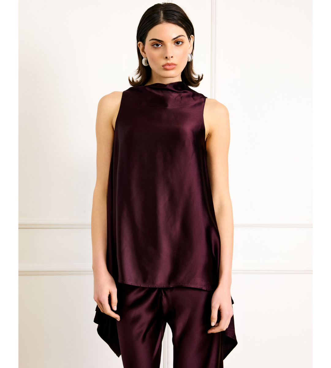 The Petrea Top is a rich maroon silk blouse that perfectly complements the matching Petrea Pants. Designed with a soft, elegant sheen and an easy, refined silhouette, it’s the ultimate piece for fall occasions and Thanksgiving gatherings—chic, sophisticated, and effortlessly polished when worn as a set or styled on its own.