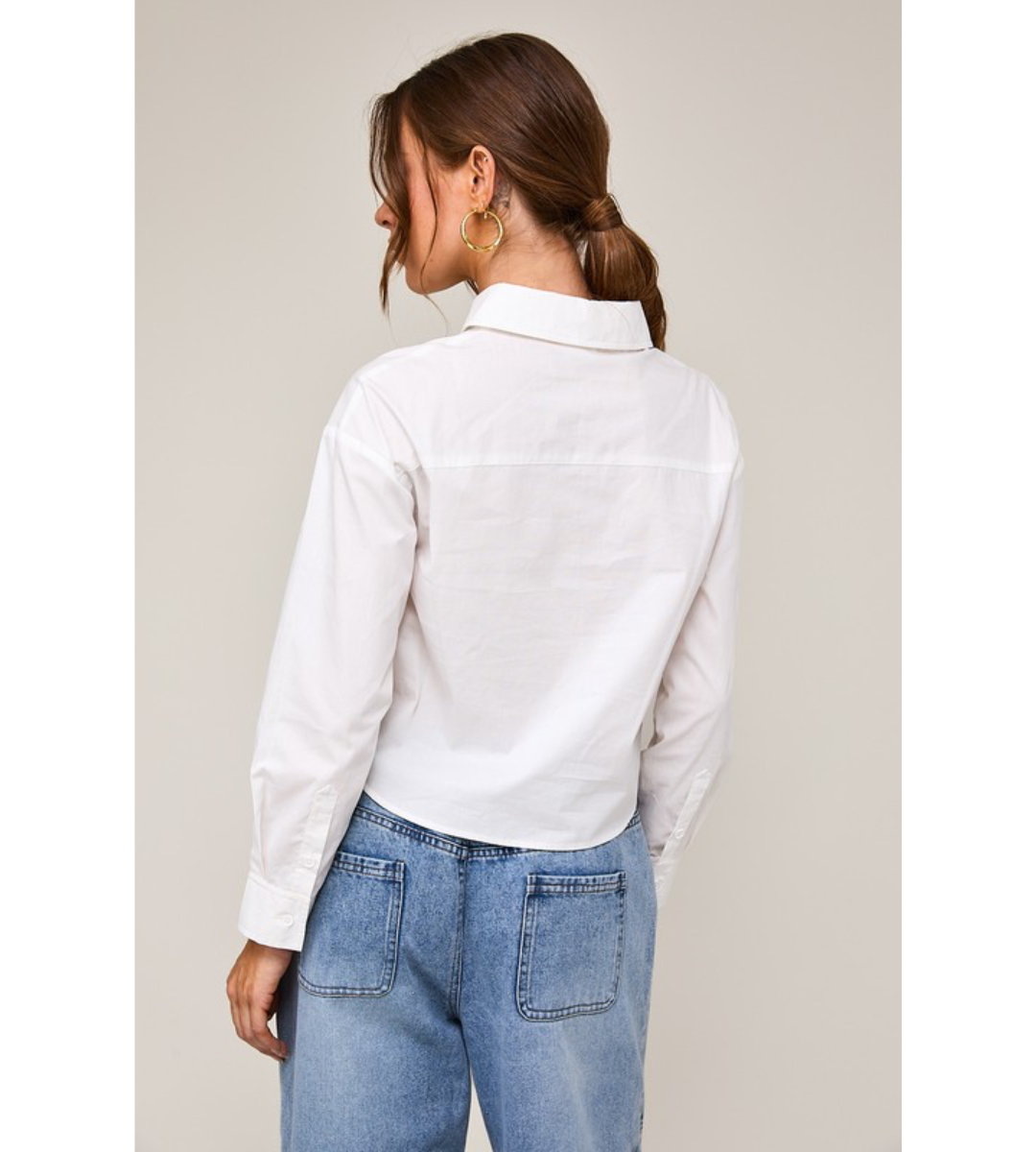 Crisp and modern, the Rosalinda Top is a fresh take on a classic button-down. Made from structured poplin, this long sleeve shirt features a cropped length, pointed collar, and clean button-front design. It’s the perfect piece to pair with high-rise bottoms for a sharp, effortless look.